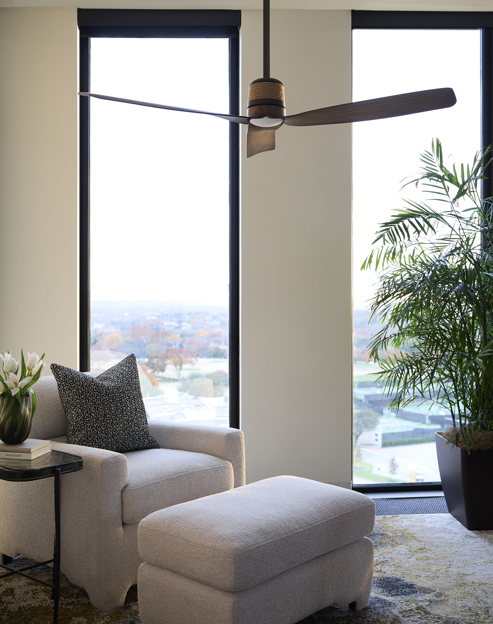 Named after the dry winter wind that blows west over the Andes in Argentina, the 62″ Zonda ceiling fan embodies the synergy of natural and human-made elements. Three elongated thermal plastic blades with a smooth, medium oak finish curve upwards to attatch to a central motor housing wrapped with jute rope. A round canopy secures the ceiling fan from a matching oiled bronze downrod. One 15-watt LED array casts a soft glow through frosted glass. Wall control with removable remote included.