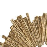This wall decor is fashioned in a circular form with rectangular and triangular individual pieces that make up the structure. This piece also features a unique opening at the center that makes it stand out from the background. This wall art design will instantly give any living room, entry way, dining room or office, or even bedroom a stylish, metallic flair.