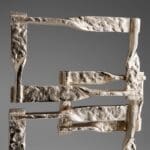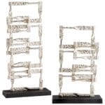 The Akira sculpture is an abstract aluminum sculpture that has a jagged quality to its shape, combining layered sharp angles. The lustrous metallic silver finish adds an elevated elegance to this tabletop accent. The exotic design is displayed on an elevated matte black base. Perfect for any eclectic living room or modern commercial space.