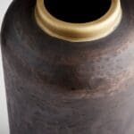 • Black iron vase | Brass-finished rim | Circular ring base | Not water tight