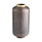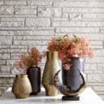 The Akita vases have beautifully round iron bodies in a black finish with a gold finished rim. Each sits upon a ring base.They are a perfect addition to any uniquely designed space. Available in two sizes.