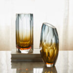 The Alba Vase, handblown from cased art glass, features a vibrant mix of blue, amber, and orange hues that bring a bold touch to any decor. Available in two distinct shapes and sizes, this eye-catching piece offers versatile styling options for a unique and dynamic display.