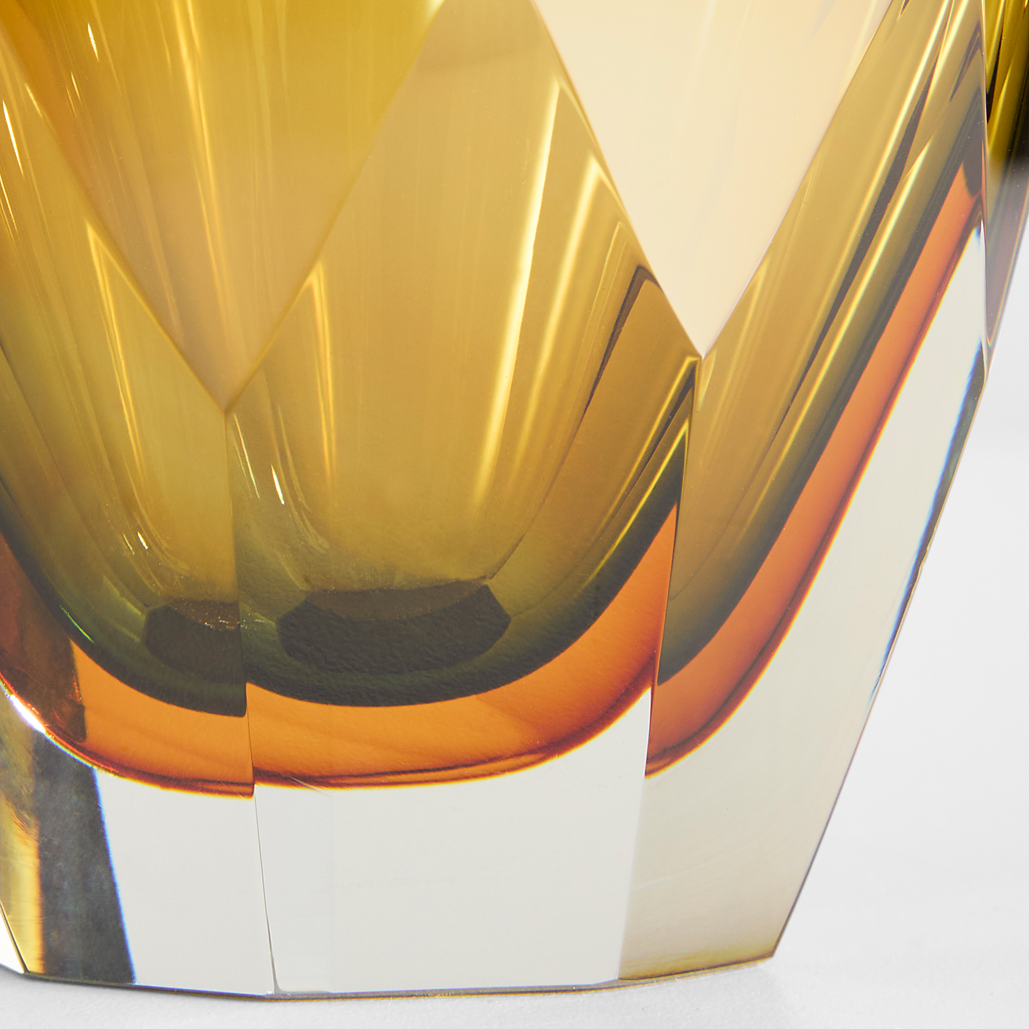 The Alba Vase, handblown from cased art glass, features a vibrant mix of blue, amber, and orange hues that bring a bold touch to any decor. Available in two distinct shapes and sizes, this eye-catching piece offers versatile styling options for a unique and dynamic display.