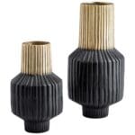 The Allumage Vase will be the perfect accessory to change the dynamic of your tabletop decor. The ribbed design will accentuate any ensemble, no matter the placement. With a two toned, matte black and gold finish, this simple but chic design will do volumes for a modern setting.