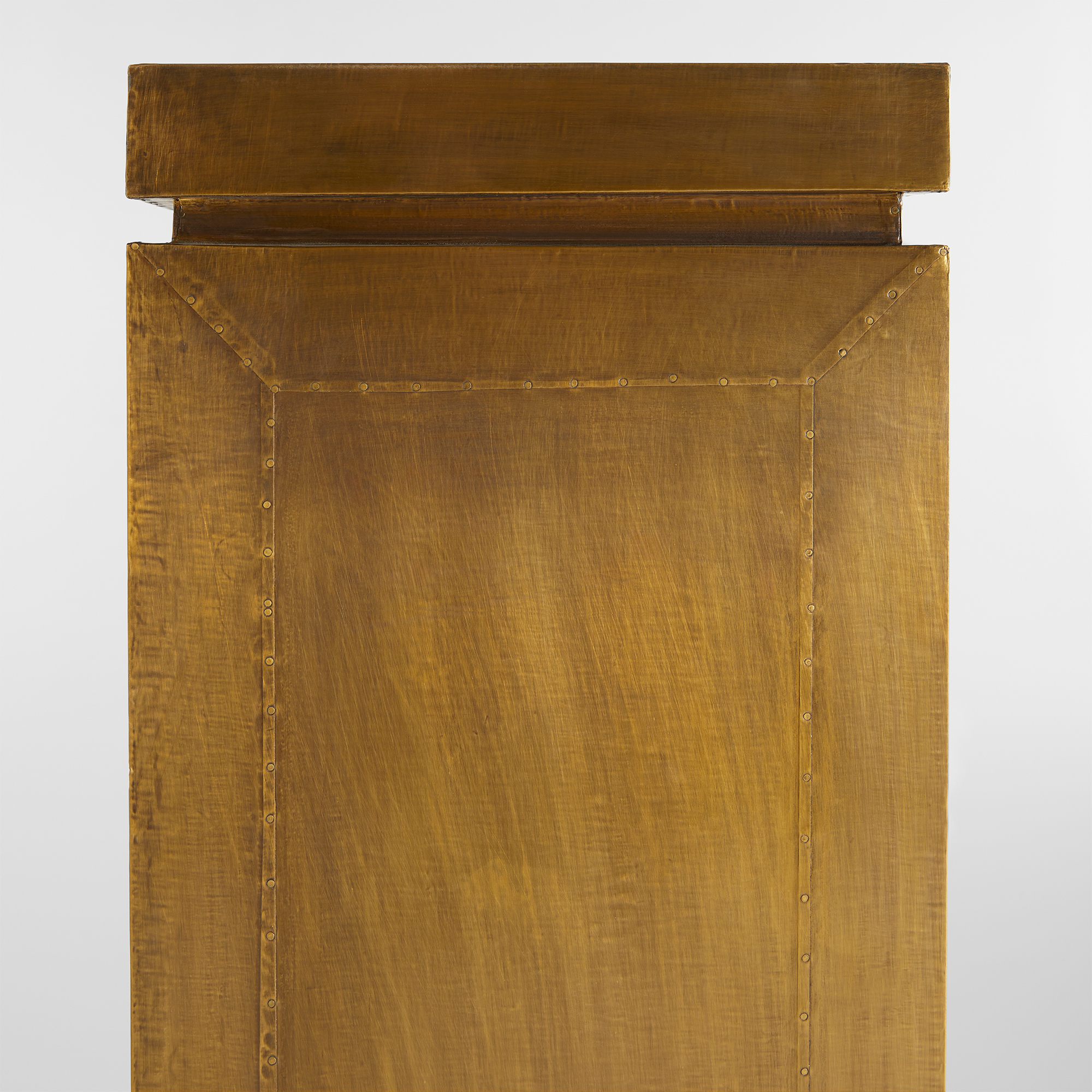 The Anatolia pedestals pay homage to the dynamic history of metallurgy through the usage of sheet brass with an aged brass finish. Brass sheets are hand-wrapped over hardwood substrate and finished with miniature nails applied to the seams. Enhance the energy of a lobby or entryway by displaying the Anatolia pedestals. Available in three sizes.