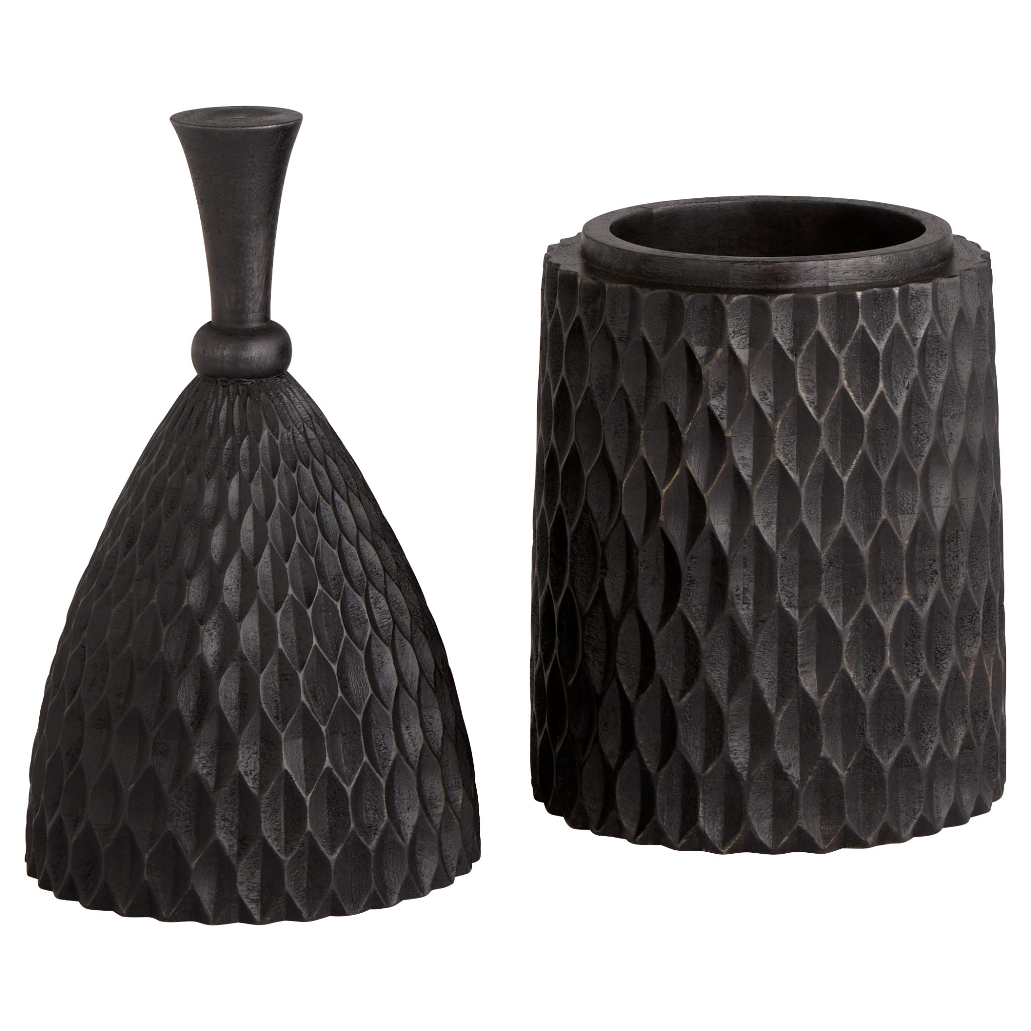 The Antigua Boxes feature a hand-carved, concave diamond-shaped pattern and a decorative finial on the lid. Crafted from solid Ardu wood with a rich dark walnut finish, these boxes come in three sizes, making them perfect for pairing together to add texture and sophistication to any space. The removable lids offer functionality to these stylish pieces.