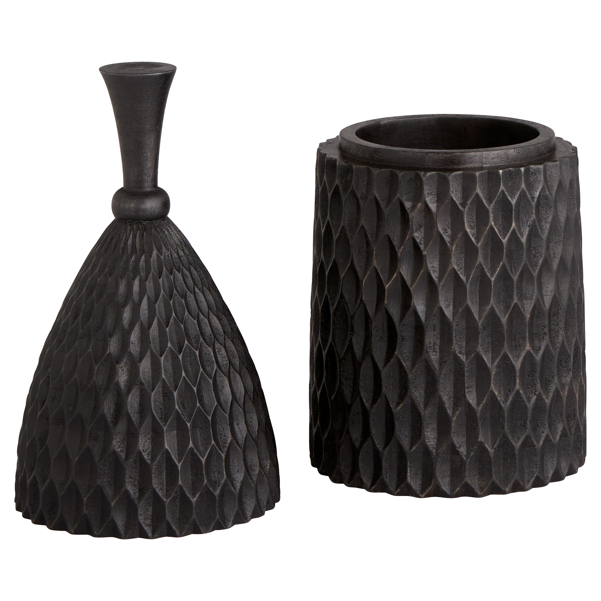 The Antigua Boxes feature a hand-carved, concave diamond-shaped pattern and a decorative finial on the lid. Crafted from solid Ardu wood with a rich dark walnut finish, these boxes come in three sizes, making them perfect for pairing together to add texture and sophistication to any space. The removable lids offer functionality to these stylish pieces.