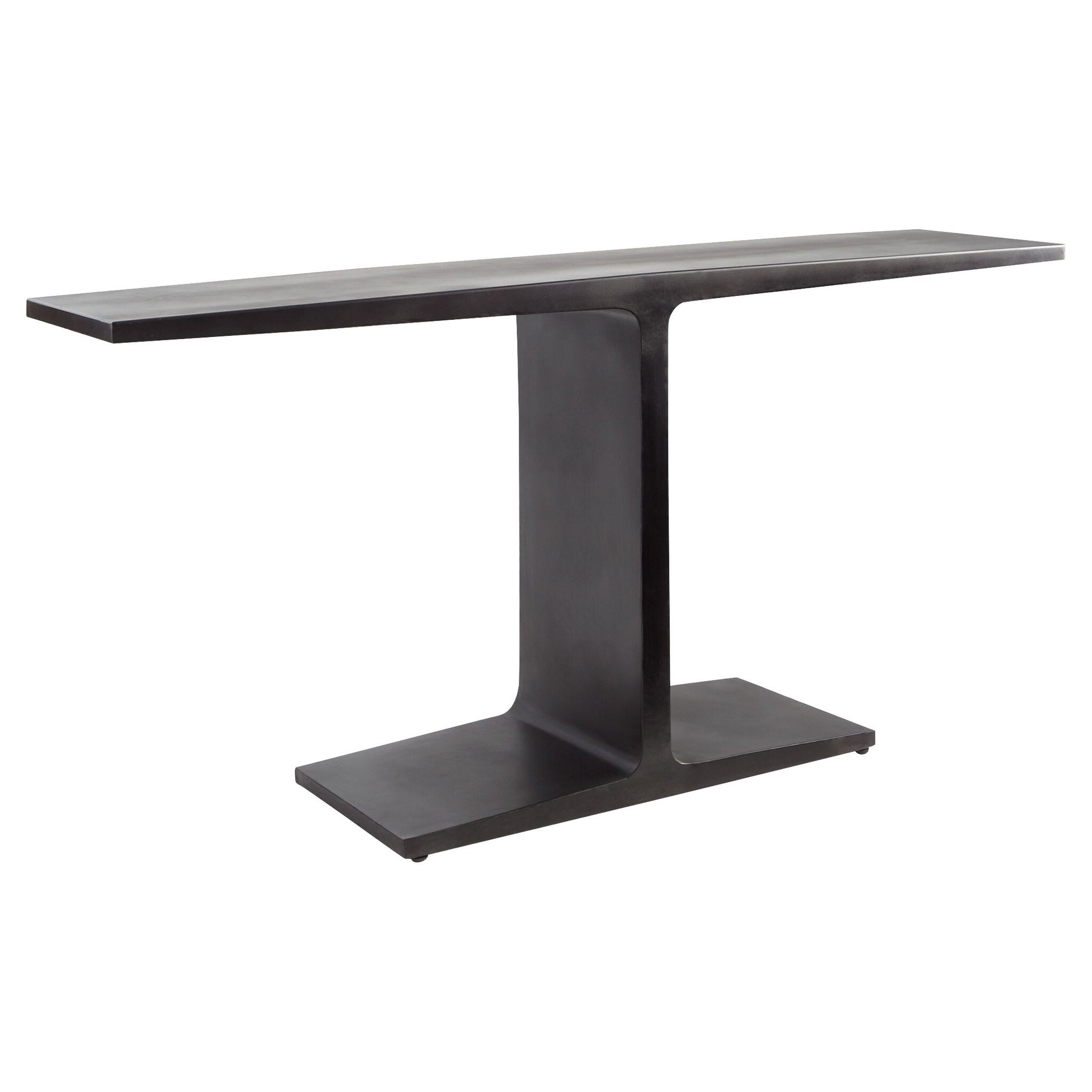The Anvil console table combines the best elements of both industrial styling and minimalist design. Simple lines and a monochromatic finish create an eye-catching, unique form. Made from mild steel finished in black, this table is sure to blend nicely with transitional, modern-loft, and modern farmhouse styles.