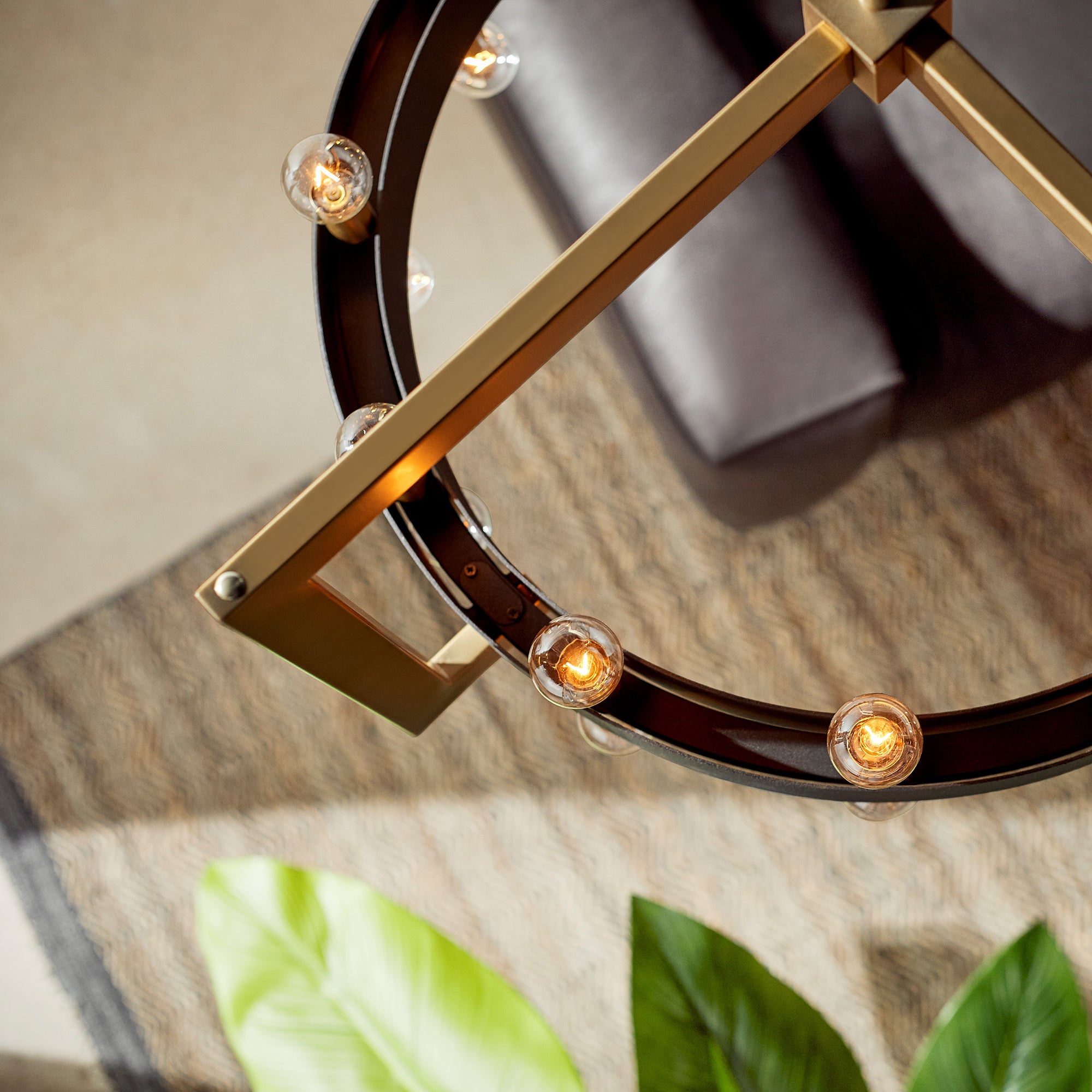 The Archibald Chandelier is a supremely imposing lighting fixture. Its gorgeous geometric structure and frame is both gilded and coated with a luxurious dark monochrome. The chandelier’s circular frame houses several lighting fixtures for heightened elegance.