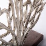 Evoking the most delicate of fan coral, this large sculpture is a dynamic addition to contemporary coastal decor. Featuring a bronze base, the coral piece features a gleaming nickel finish that stands out in any selected spot on a shelf or tabletop.