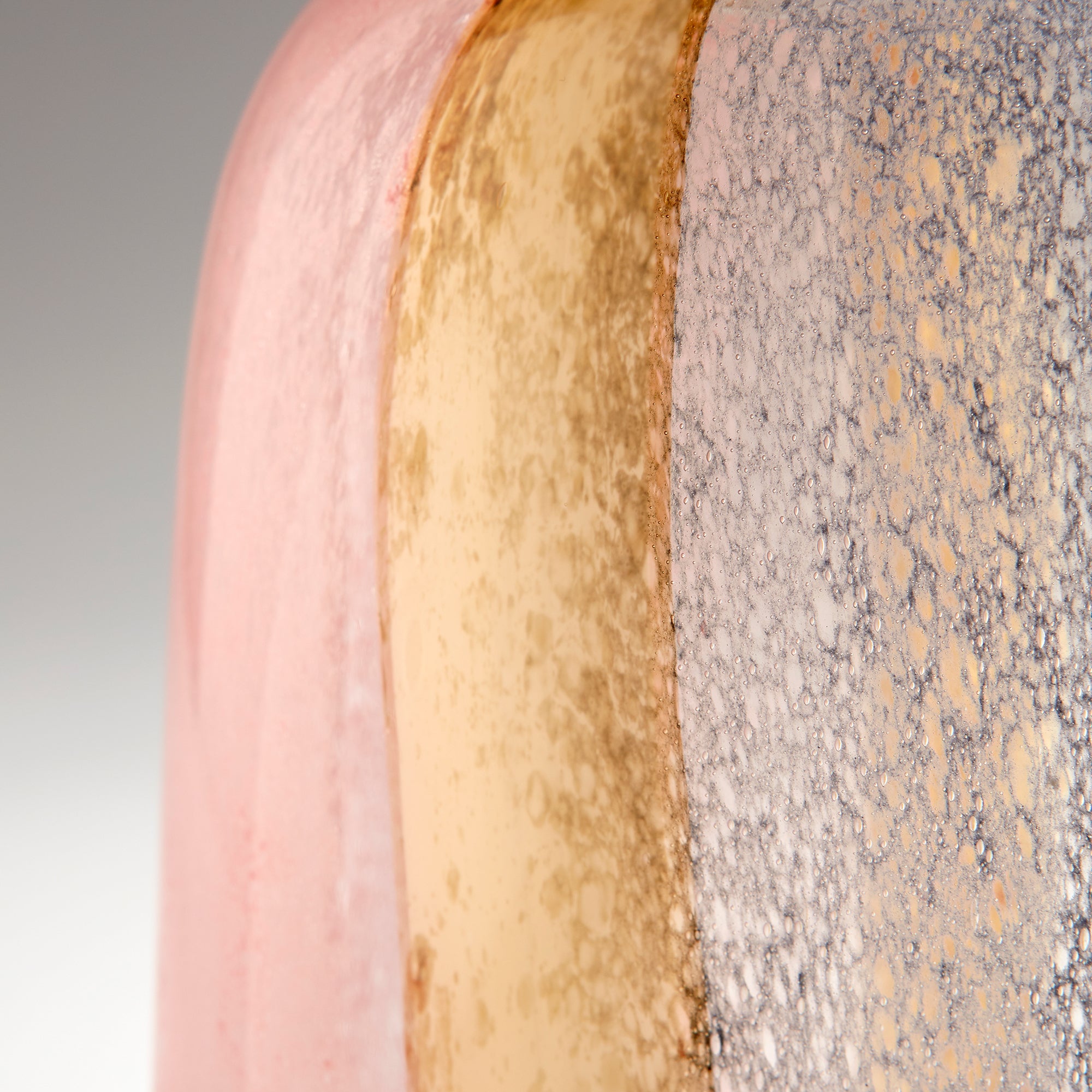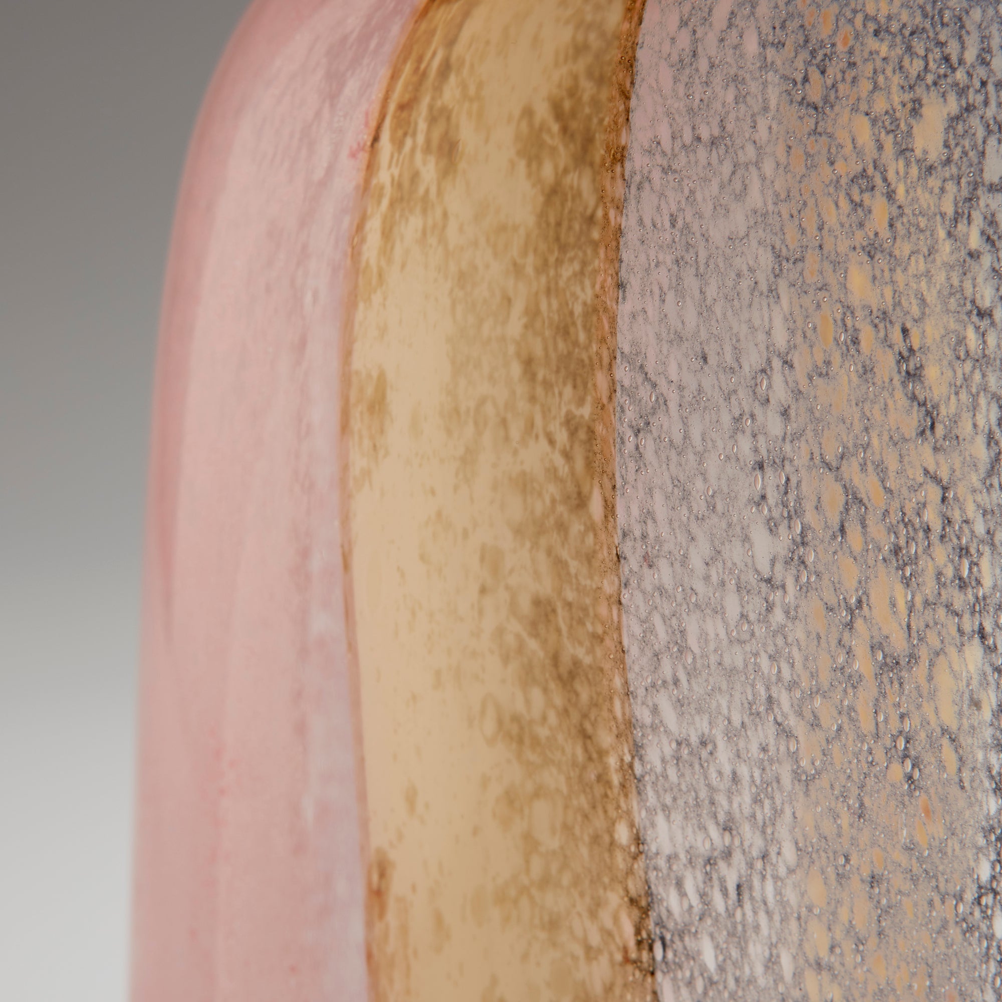 The Astra vase takes center stage in any display setting. This handblown triplex glass accent features a trio of pastel colors, lavender, cream, and pink, that are formed in a vertical wave, spanning the entirety of the vase. Gorgeous when displayed alone or with the additional two sizes included in the set. Perfect for any decor style, any of these vessels make the perfect anchor piece for any living room coffee table, study room bookshelf, or entryway display.