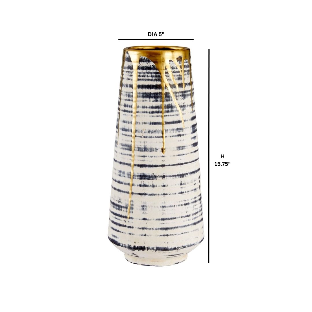 Ancient allure and modern worldliness converge in the Athenian collection of ceramics. Each piece is crafted with precision to evoke the grandeur of historic Greece with a contemporary twist. A subtle black wash applied to the body’s horizontal striated pattern mimics the depth and texture seen in the architectural marvels that define the Athenian skyline. Finished with a luxurious gold gilded rim, the Athenian Collection exudes a sense of mystery and intrigue, adding drama to its already striking presence. With its large-scale design, each piece commands attention and makes a bold statement in any space. Available in multiple sizes and styles.
