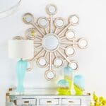 Delightful floral accents tell the tale of a romantic ambiance. This glass table lamp celebrates a lovely blue glass body with elegant curves, while a white cotton shade features a surprising floral lining that delivers a lovely garden effect.