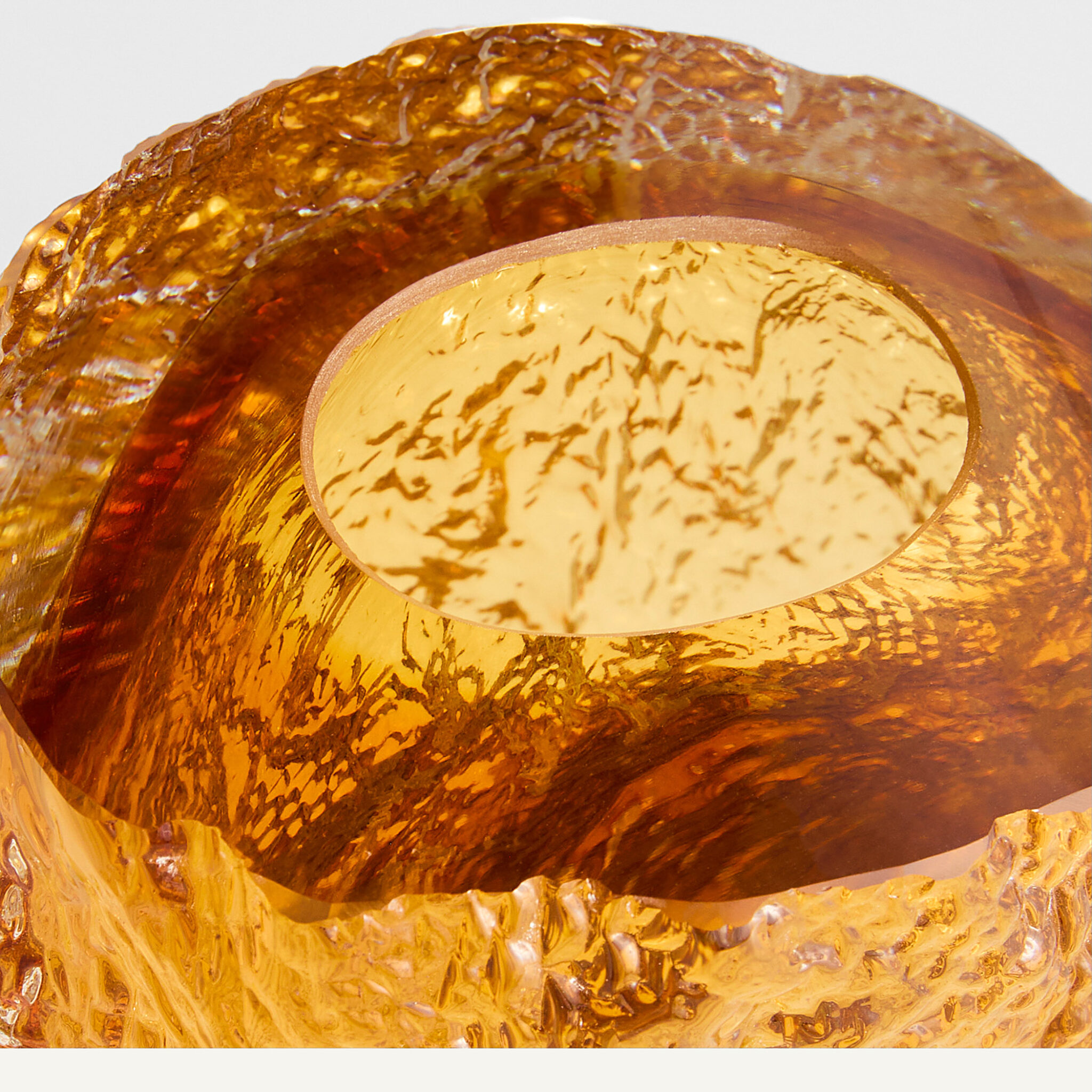 The Baltic Vase is crafted from cased art glass with earth-tone amber glass. Available in three sizes, these vases can be paired together for a cohesive display or styled individually for a statement look.
