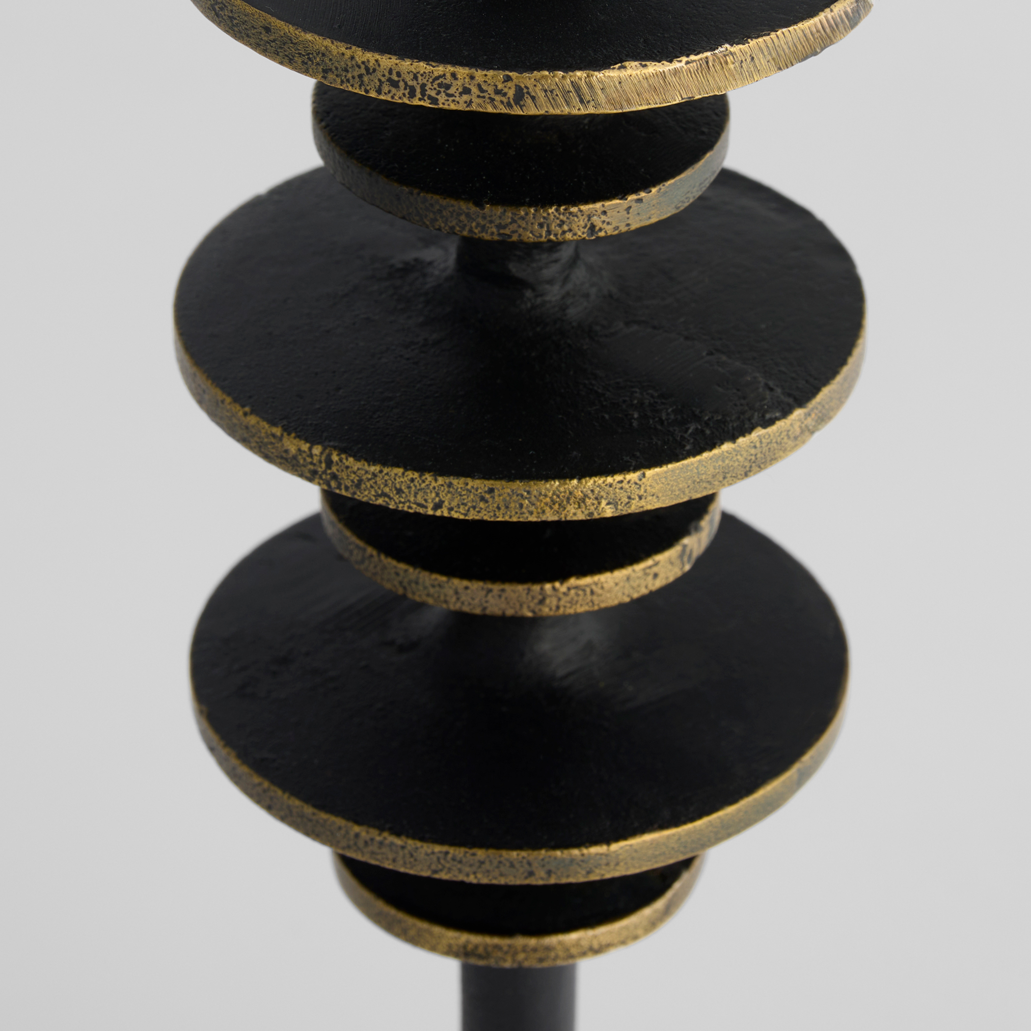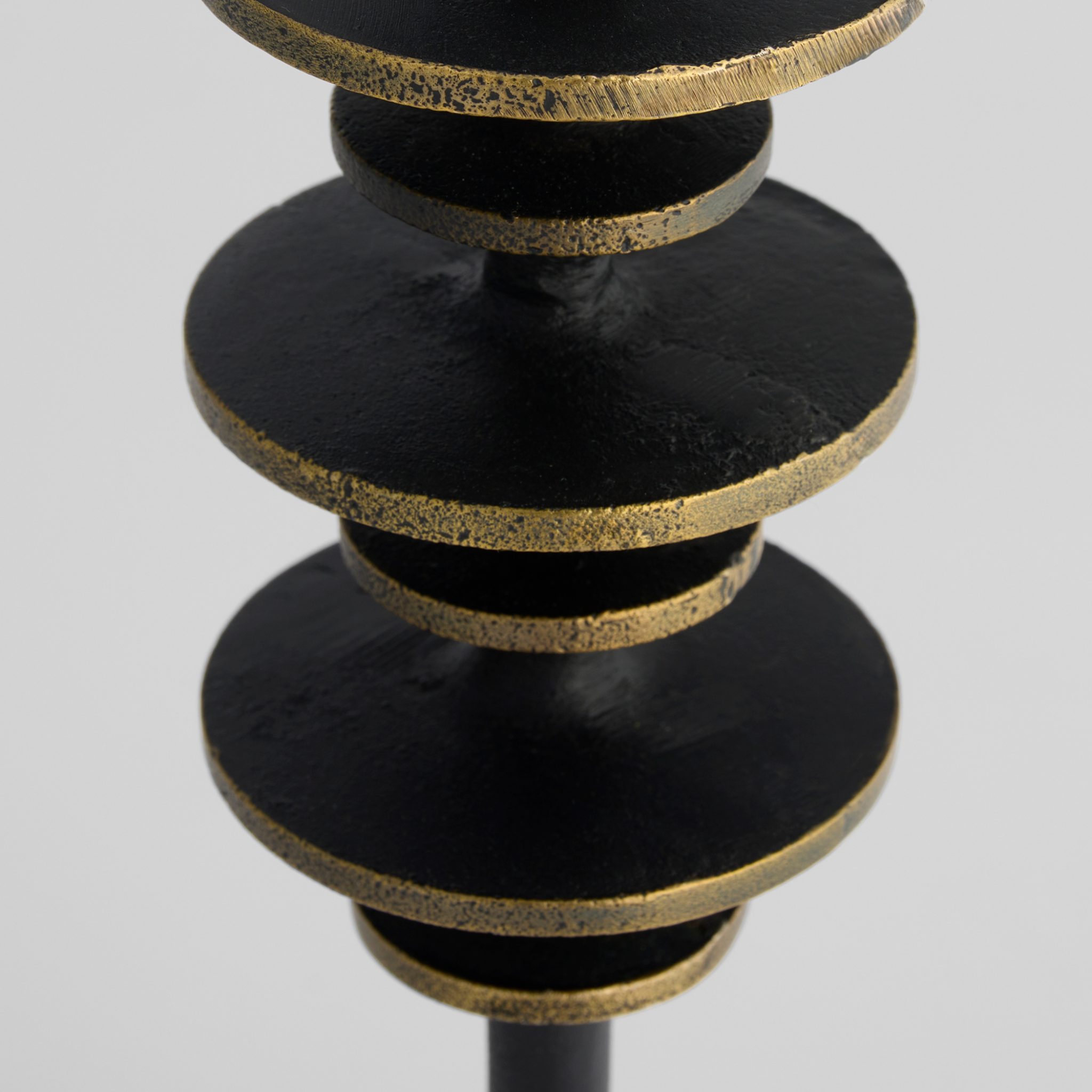 The Barcelo Collection reflects the influence of Catalan modernism and Barcelona’s striking architecture. Crafted from cast brass with an antique patina finish, its design features alternating disc sizes with subtly exposed rubbed brass edges. The design tapers off to sit atop a sleek white Banswara marble base, blending bold structure with elegant contrast.