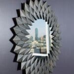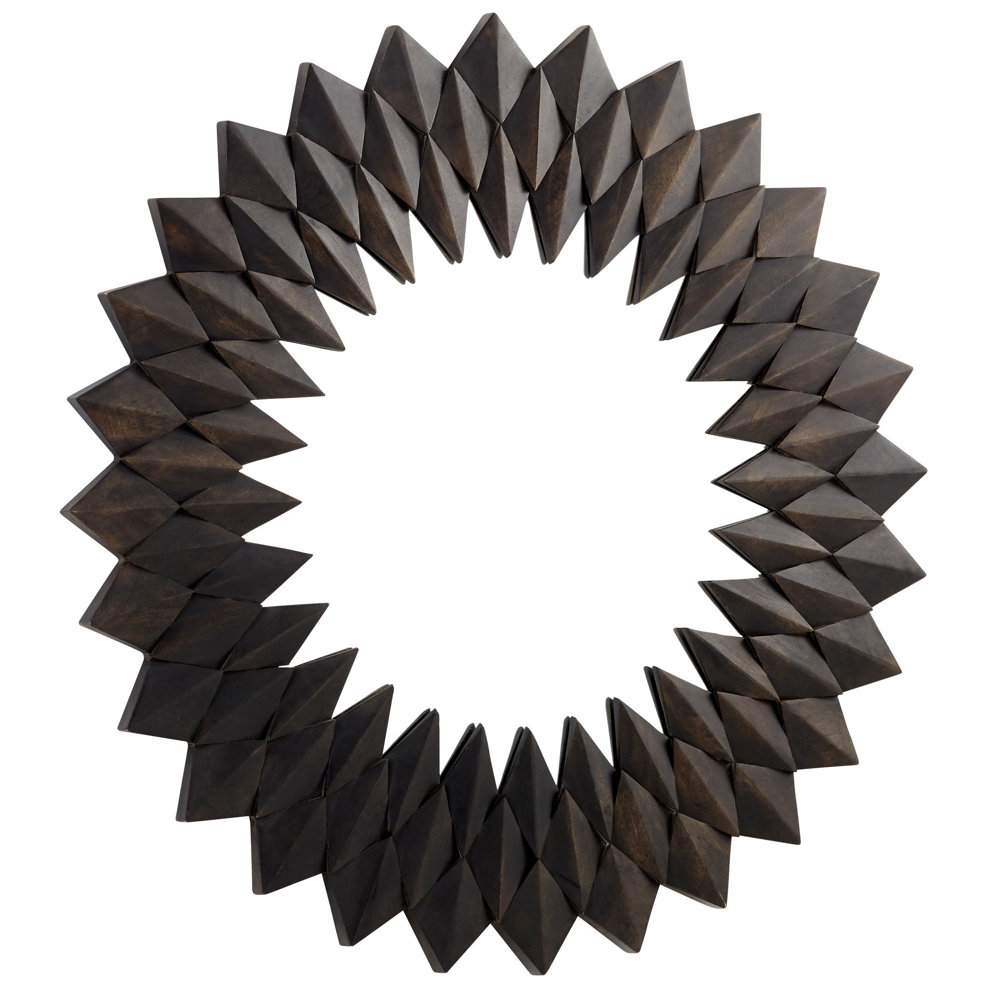 This decorative wall mirror features an organic wooden frame in a weathered grey finish. This wooden mirror has accented tabs that are arranged side by side into one large circle with the reflective glass centered perfectly to provide absolute symmetry. This gorgeous mirror makes an impressive statement showcased in multiples or works just as well hung individually in any modern farmhouse home or rustic-inspired commercial space.
