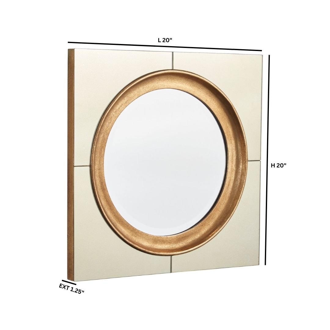• Antiqued Square Mirror Frames Inner Round Mirror | Antiqued Gold Trim | Display In Multiples
