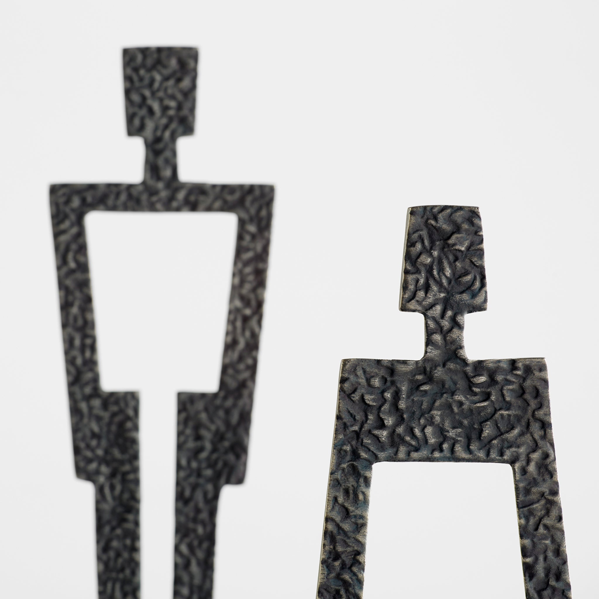 The eponymous duo, Benedick and Beatrice, are modeled after the tumultuous, yet enduring Shakespearean couple in”Much Ado About Nothing.” The pair of male and female silhouettes are reverently crafted from antique bronze-finished steel hammered by hand. Each sculpture is perched atop a white marble base. Display separately or as a married pair for a feature that is sure to spark conversation.
