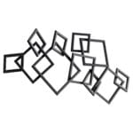 This wall decor features individual metallic squares that are fashioned together. The size of the square vary on their positions and are angled outward to give this wall art a 3-D effect. This sculpture will enhance the contemporary look of your space. The abstract design will provide visual interest in any commercial or home application.