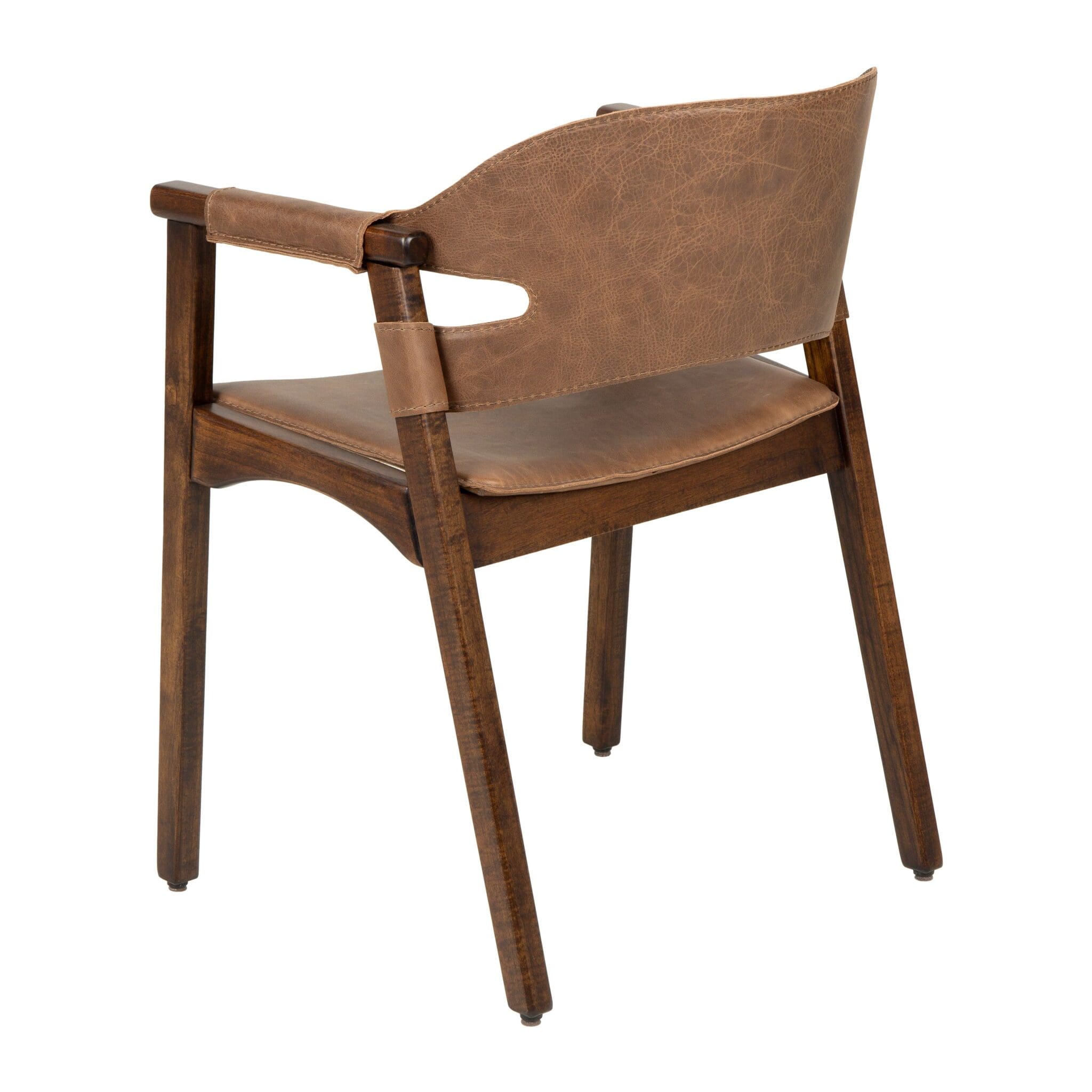 The Boss chair features a solid Grandis wood frame, reinforced by multi-laminated sheet metal. With a D26 foam seat upholstered in medium brown distressed leather accentuated by sewn caramel topstitching, it offers a comfort and class. Tapered legs complete the design.