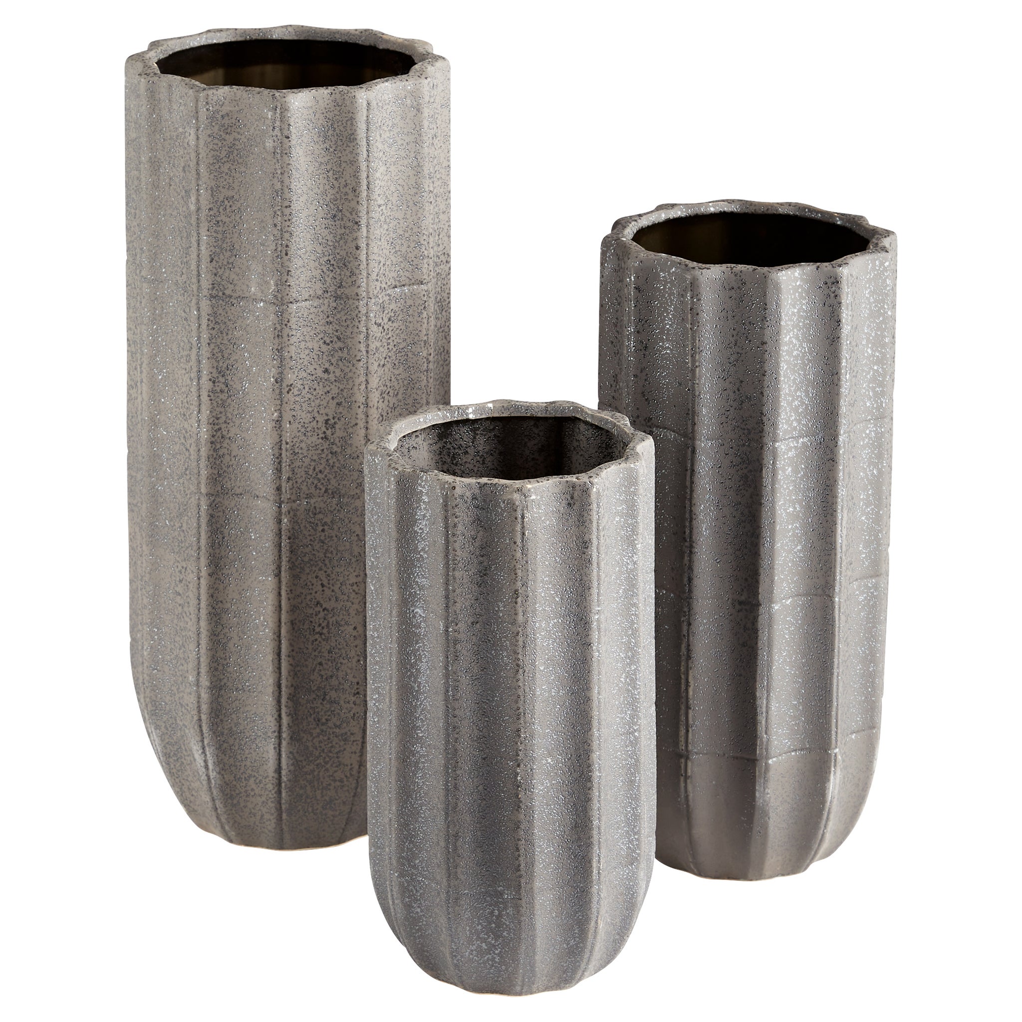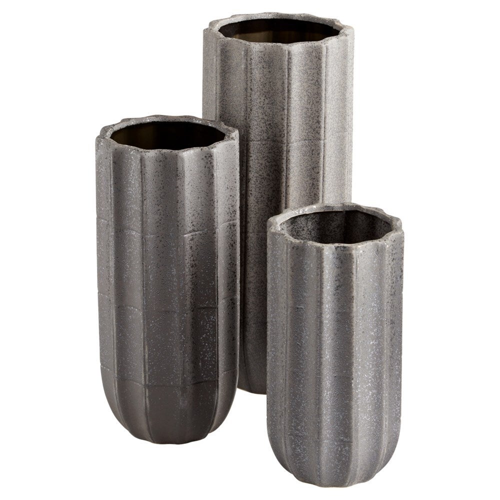 This rugged cylindrical bases of the Brutalist Vases gives this set an industrial aesthetic. The body of the vase is split into rectangular grids and has a concrete-like finish. Sometimes simplicity is all you need to complete a fresh look within your space. This vase will certainly make any informal or formal interior space pop with or without plants.