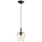 Add warmth to a bare nook with this charming champagne glass pendant light. A golden fabric cord and rich, oiled bronze finish iron supports beautifully complement the light’s shapely champagne glass shade.