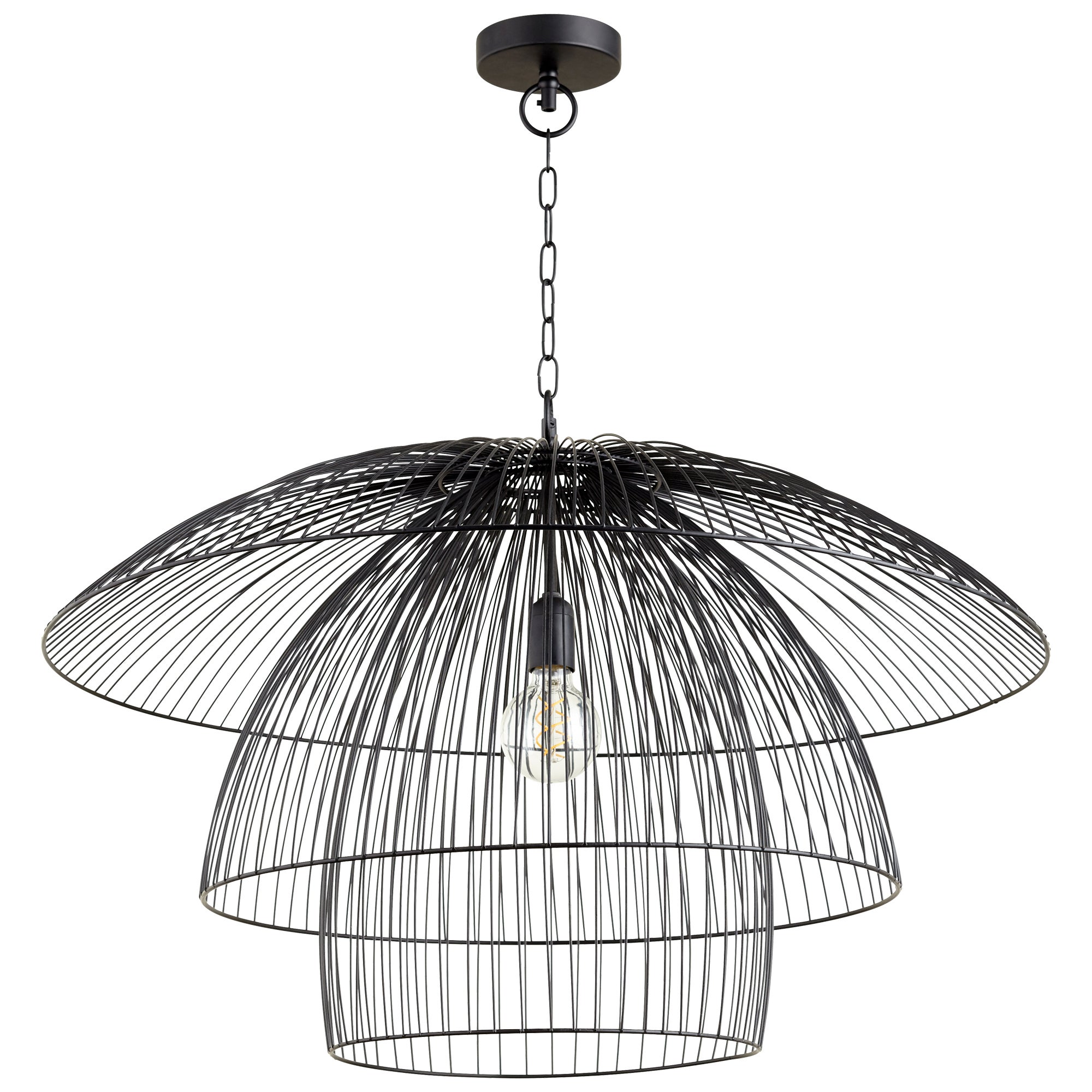 Illuminate your ensemble in eclectic style with the one-light Canopy pendant. This matte-black pendant is crafted from iron, featuring a three-tier open-frame shade that liberally diffuses light emitted from a single 60W medium based bulb. The design allows for the emission of an abundance of ambient light in every direction while offering a whimsical look fit for any modern, transitional, or boho-inspired space. Ten feet of adjustable cord gives some variety in height, allowing you to tailor to your space`s needs. Stack three over an island for a warm glow throughout your kitchen or line your hallway with a grouping for the perfect amount of light to guide your houseguests.