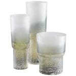 Variance in texture, tone, and size are what make the Canyonland vase standout from the rest. This reverse tulip-silhouette sports a gradient clear to gilded silver surface finish. Transitional versatility offers this vessel a place in any contemporary setting. Adorn your living room, entryway, or commercial lobby display with multiple Canyonland vases (available in three sizes) and top with a floral bouquet for an added natural touch.