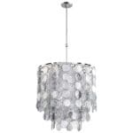 Promote a festive, lighthearted ambiance and a blend of understated luxury with the Carina pendant. This elegant nine-light, polished nickel and glass pendant presents a look of shattered silver and clear disks dancing above a treasured dining ensemble or entryway. Choose this glass and polished nickel pendant to make a statement in a contemporary space.