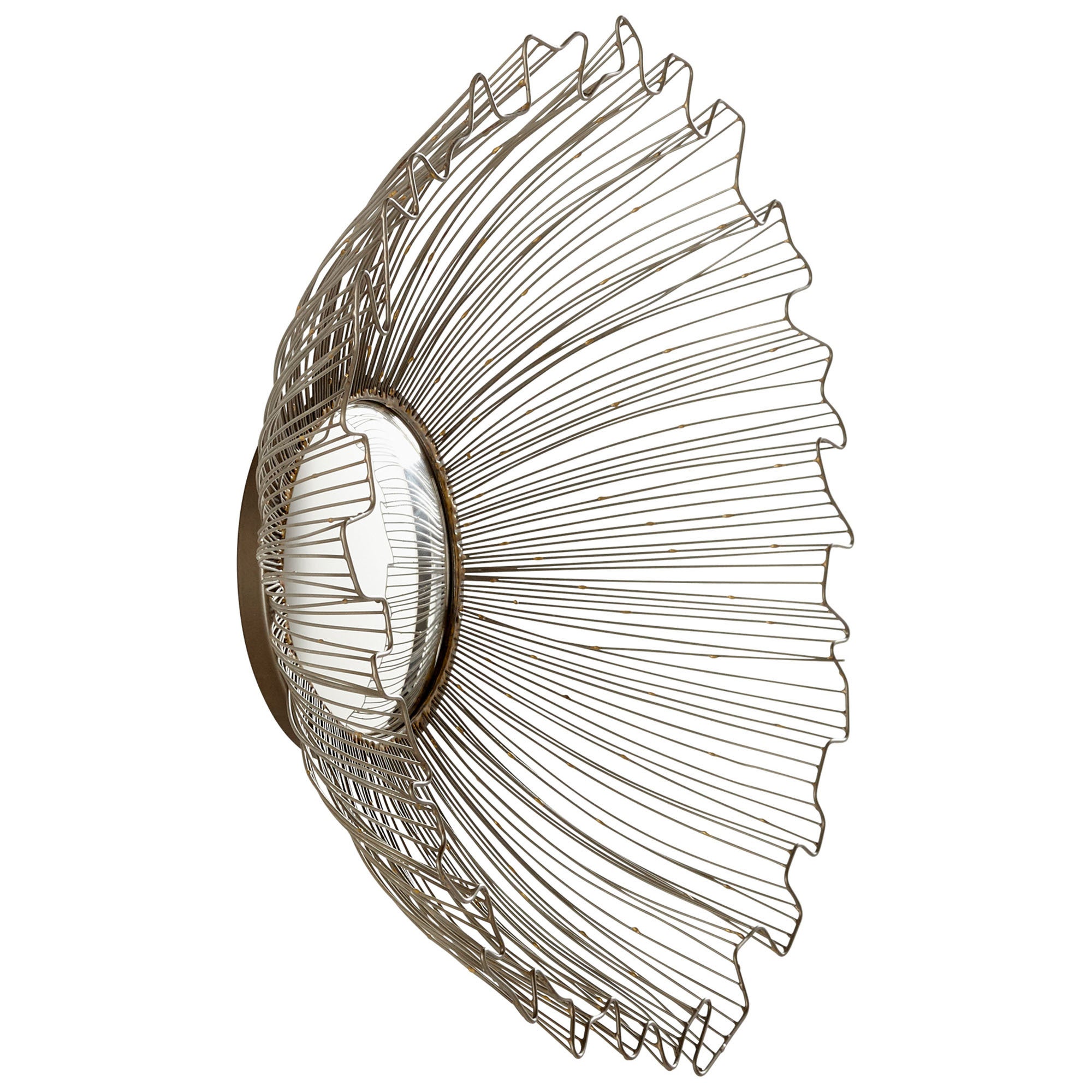 A beautiful, ribbon-like frame of thin iron is the spotlight in this stunning small zinc mirror. The three-dimensional frame creates a centerpiece perfect for any modern living room.