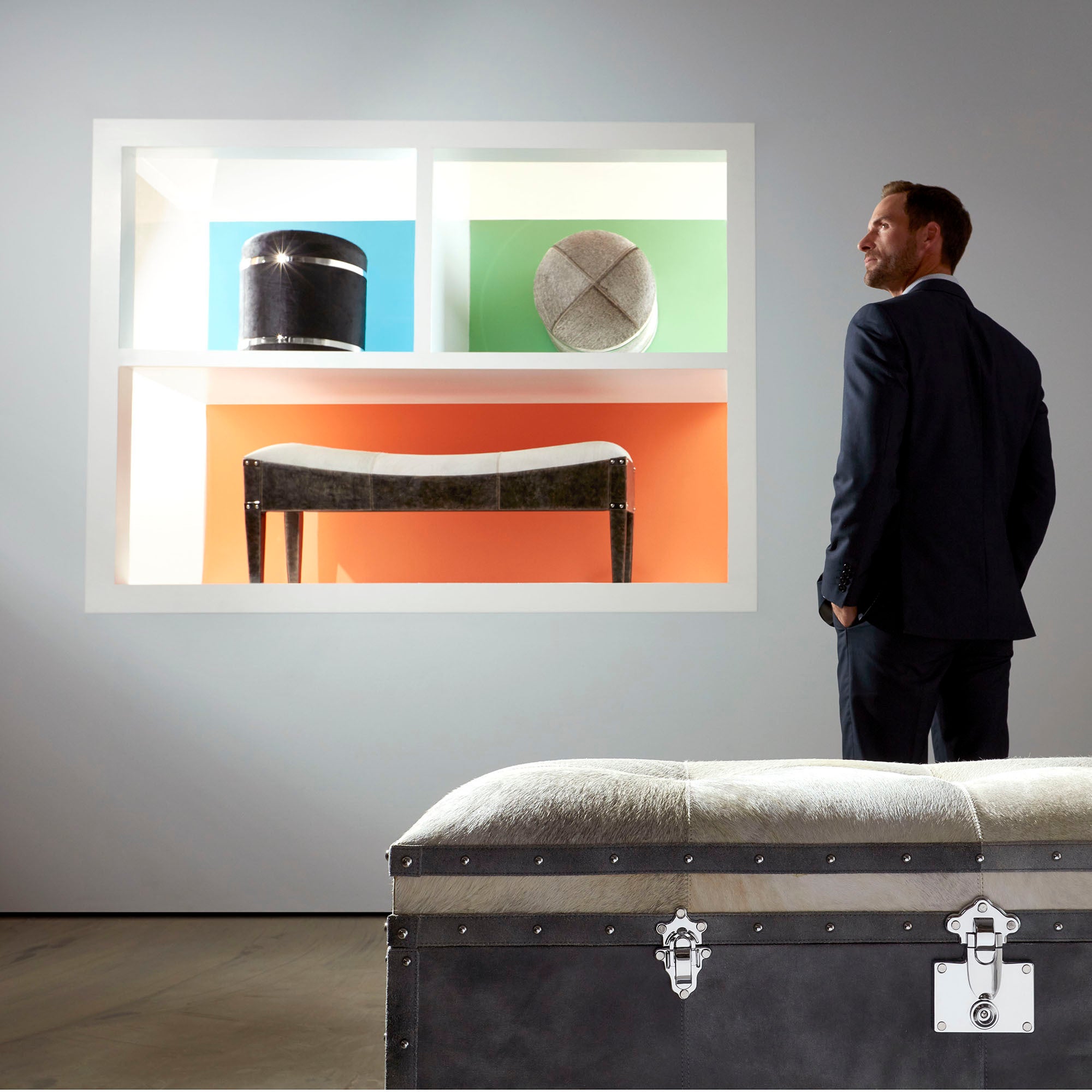 - Hair-on-Hide Leather | Foam | Metal | Wood