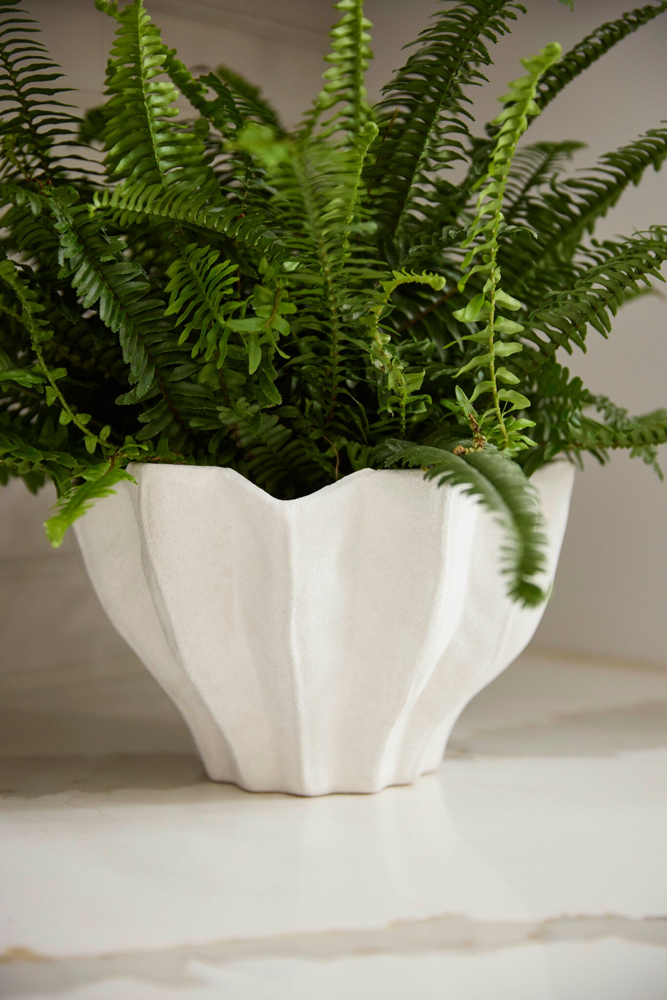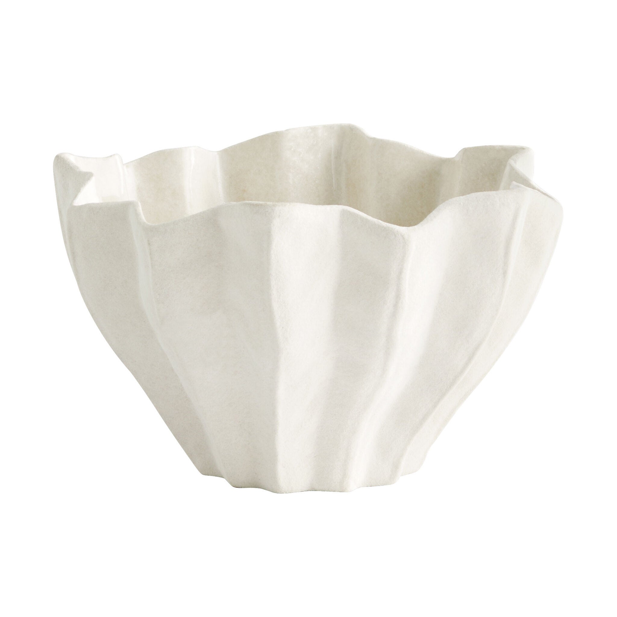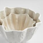 Named after the Springtime goddess, Chloris, this collection of ceramic bowls is inspirited by notions of growth and fertility through a form of an opening bloom. A wide rim tapers down to a petite base in gentle folds of white. Apply the collection’s natural energy to any living room, covered patio or washroom. Available in two sizes. Not water-tight.