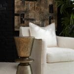 The Clepsydra accent tables are a perfect embodiment of elegance in a compact form. Antique brass or antique nickel finishes complement a highly-textured surface akin to coarse burlap, infusing the design with a commanding charm. Its ideal size makes it a versatile choice for an accent table.