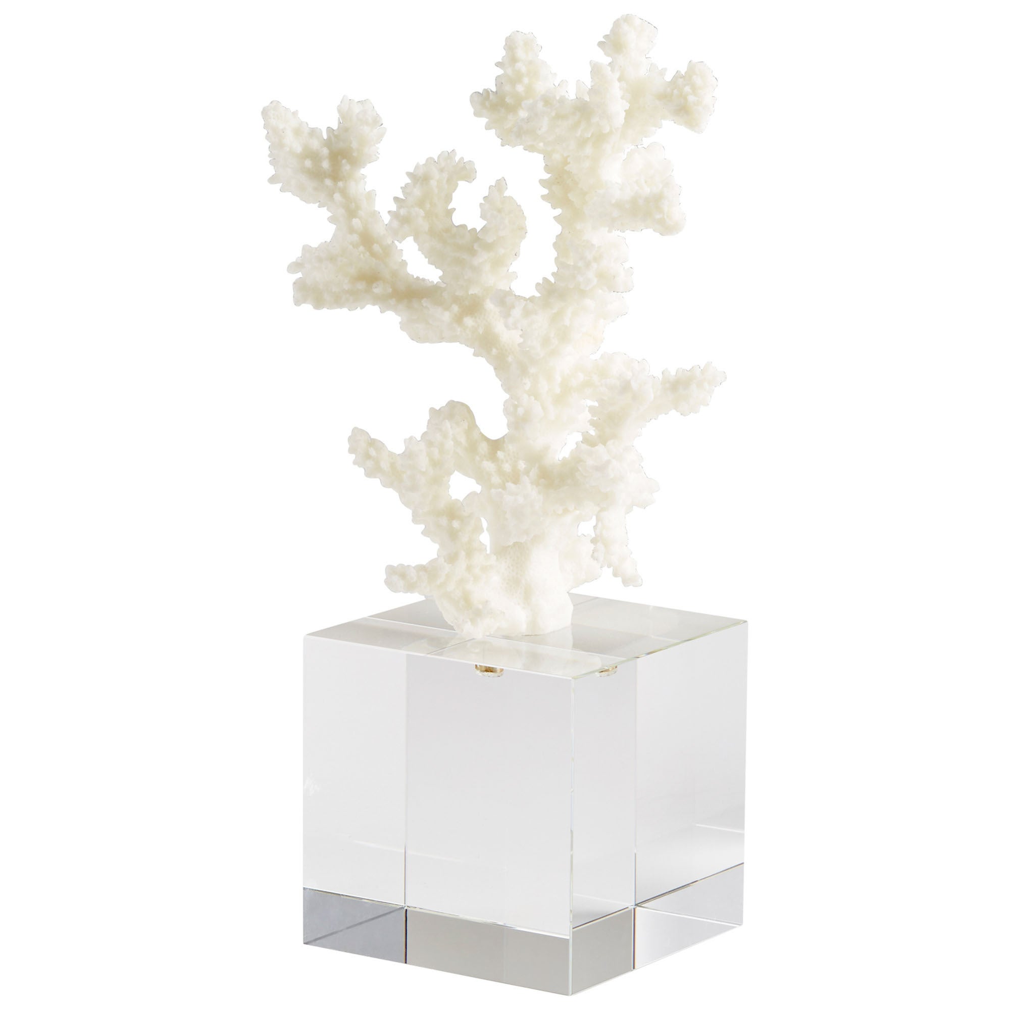 Textured branches of coral reach in every direction from this charming coral sculpture. Perfect for an ocean enthusiast, this large sculpture features a white finish and rests on a crystal cube base that glitters on a mantel or desktop.