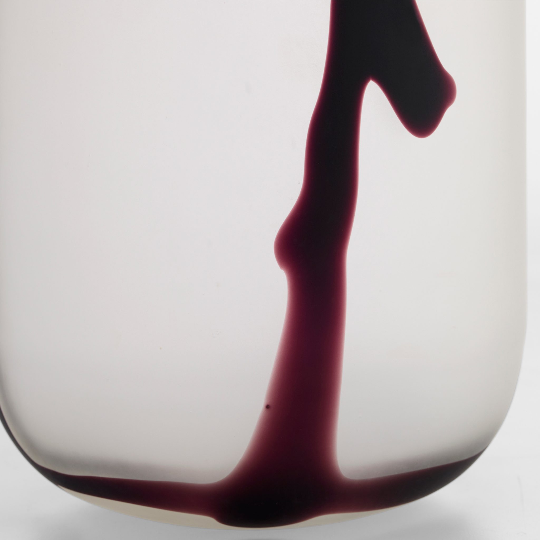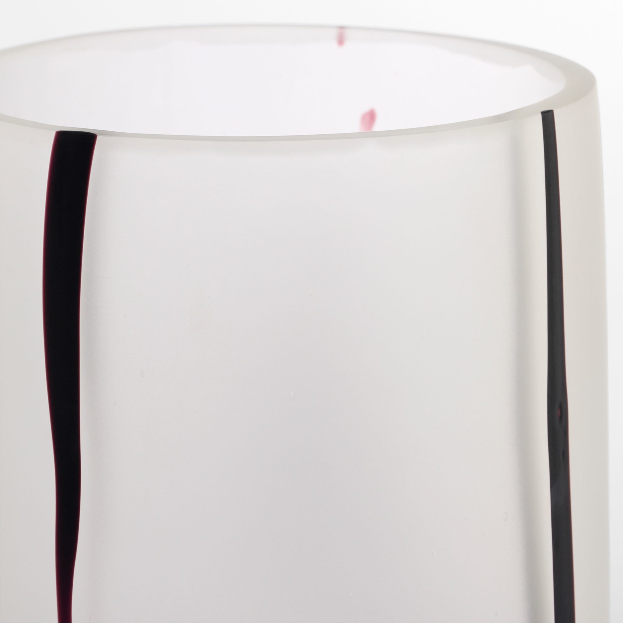 The Crawford Vases exude sophistication with their frosted, etched design. Clear molded glass is layered with black and then meticulously carved away to reveal an abstract pattern. A final sandblasting treatment enhances the texture, creating a refined yet mysterious appeal.