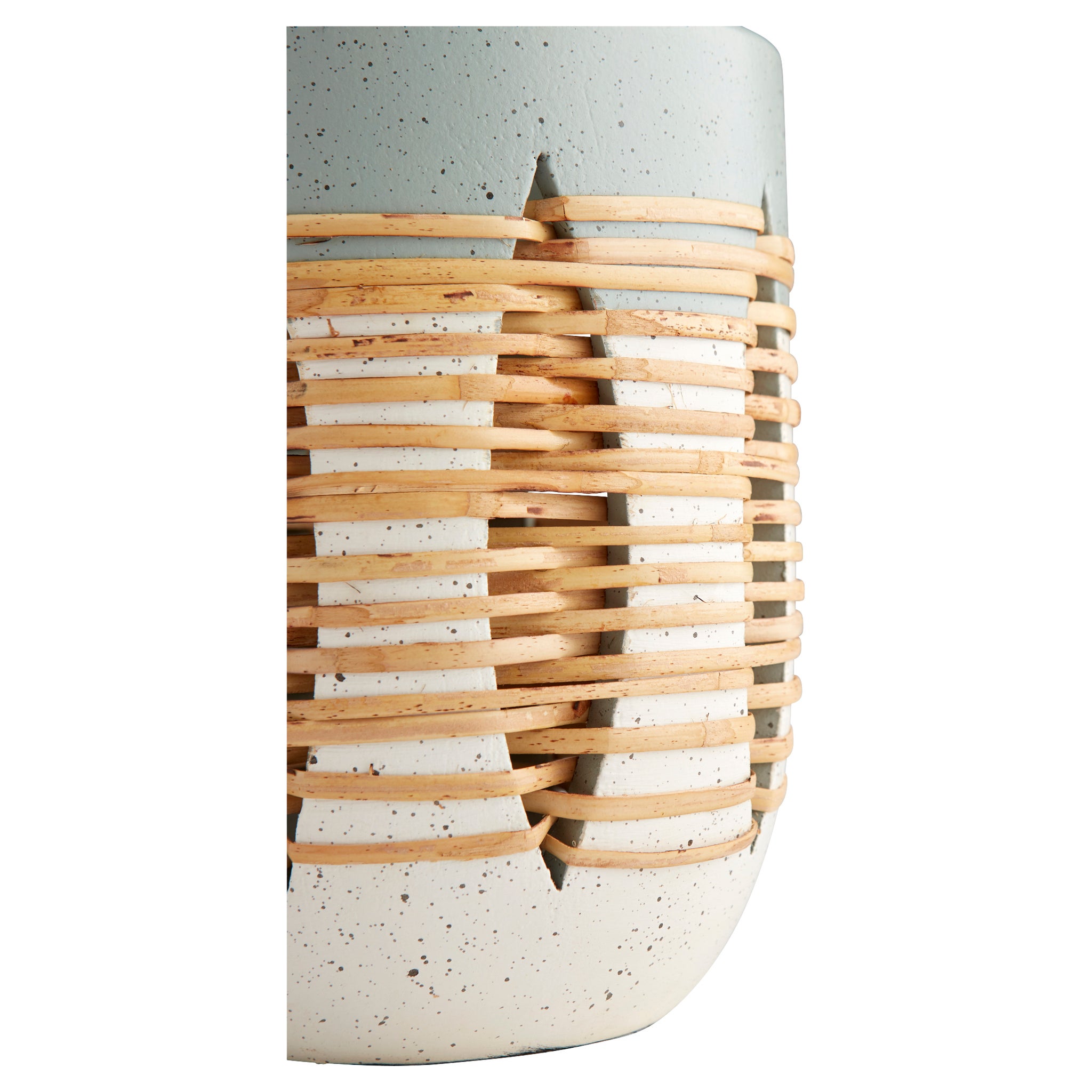 The Crescent vase is a gorgeous synthesis of materials. Its two-tone monochromatic finish is juxtaposed with an intricate weaving of wicker in between multiple hollowed crescents that encircle the body. Simple and compact for indoor spaces.