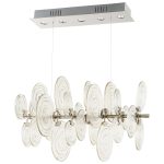 Radiate light while upgrading the style factor in any dining or living room with this geometric five light iron and Clear glass pendant. Thin, strategically placed circles surround a sleek horizontal bar, creating a modern glow of light.