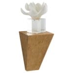 The Doro Wall Shelf is not just a piece of storage; it’s a sculptural masterpiece that redefines the concept of functionality and style. Crafted from sheet iron and finished in luxurious gold leaf, this 3-D wall shelf appears to defy gravity, with its angular structure tapering towards the wall, creating an illusion of floating in mid-air. This design element adds depth and visual intrigue to the shelf, making it a striking work of art. Available in both large and small sizes, the Doro Wall Shelf is a sophisticated storage solution.
