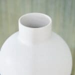The Elara vase is crafted from a ceramic material with a vintage rounded silhouette. A clean and neutral vessel that lends decorative appeal to any tabletop display will fit beautifully into any style decor. Highlight a single beautiful bloom or display unadorned for an equally stunning effect. The subdued matte white finish is the perfect complement to any living room, entryway, or kitchen design.