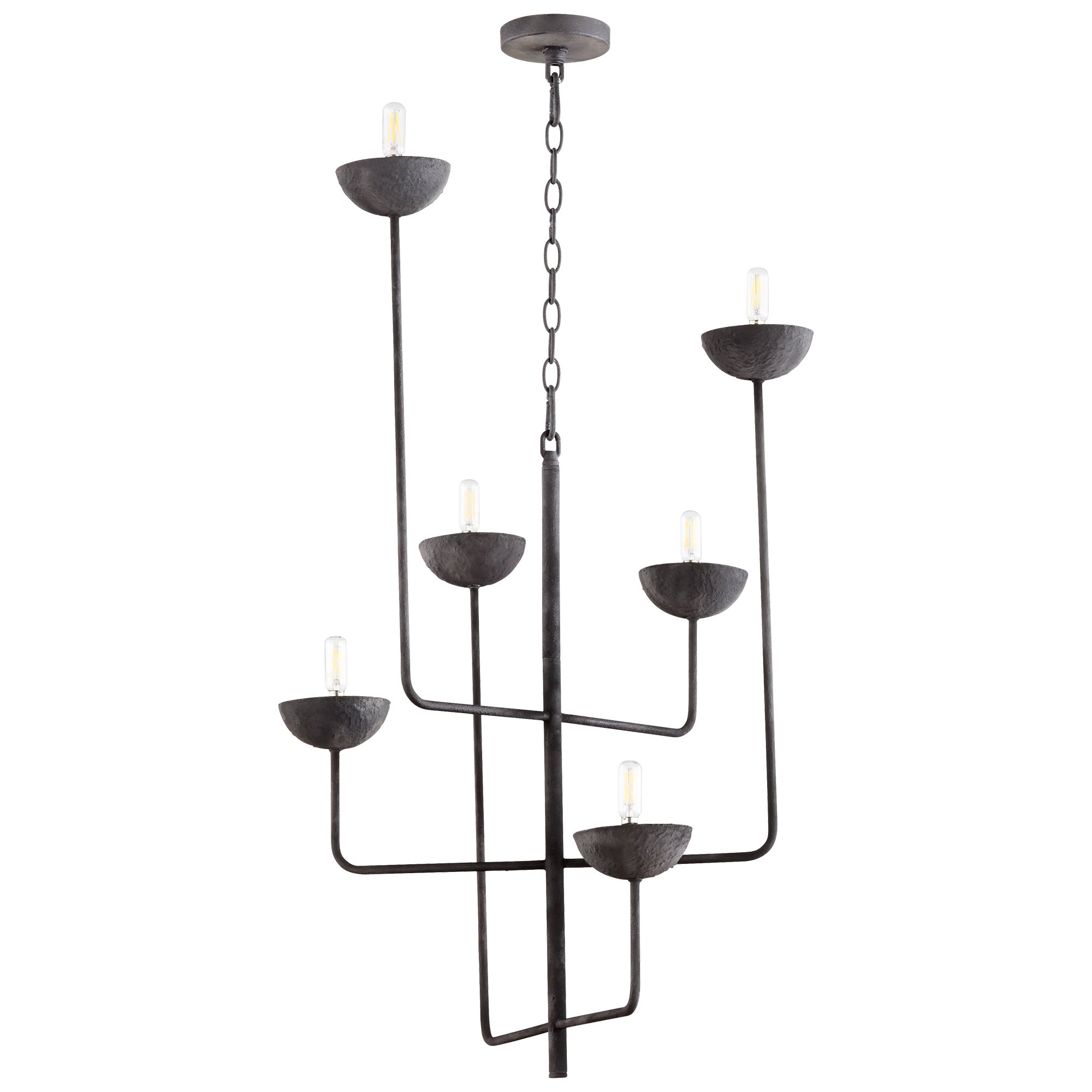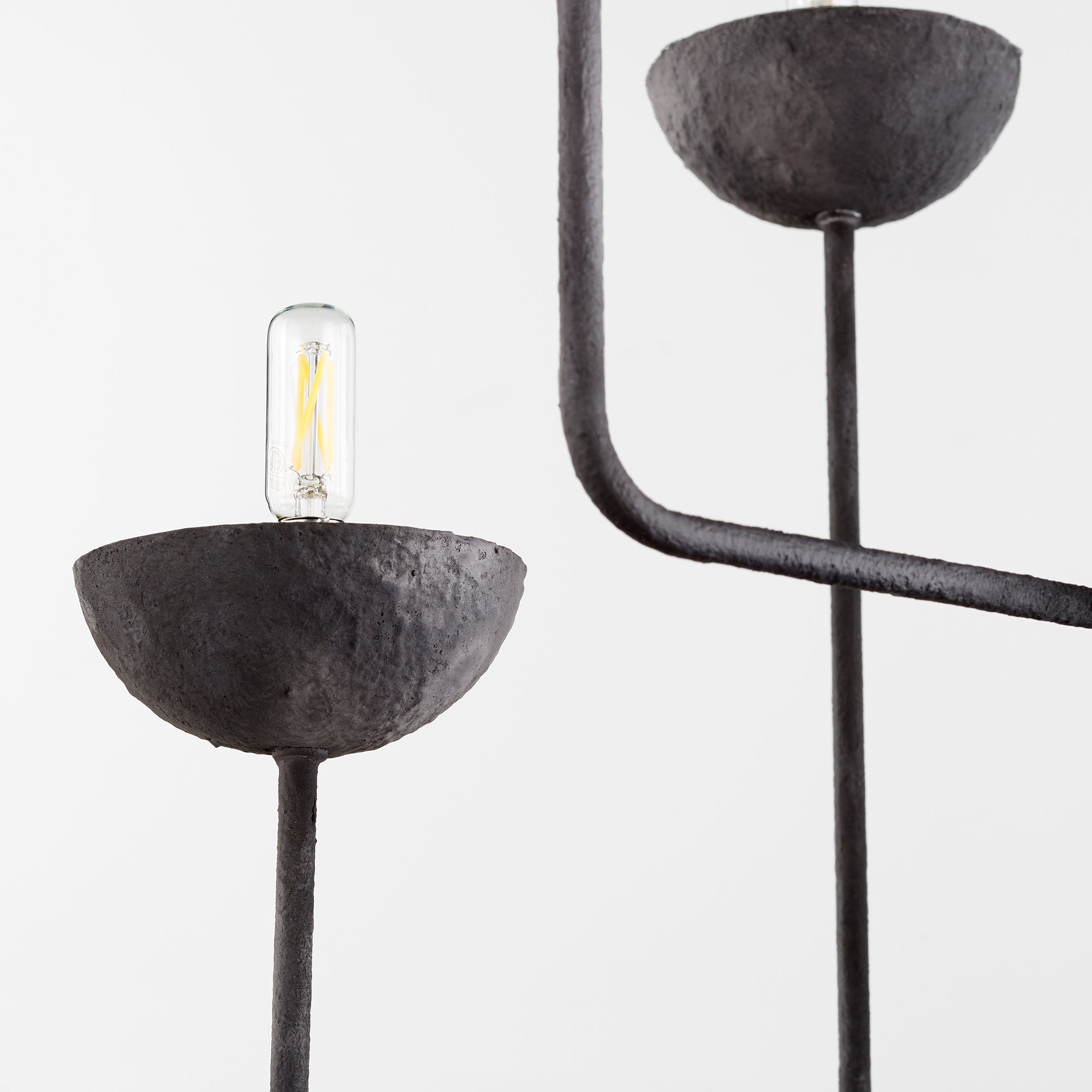 Accent your space with the minimal styling of the light and airy Enoki chandelier. This whimsical luminary features staggered tiers of light arms that come together to create an abstract effect. The frame’s softly angled design includes decorative sconces that serve as a nest for the candelabra light sources. Fit for an elegant loft living space or a luxurious penthouse dining room, a classy noir finish consumes the sophisticated and refined frame’s modern curves.