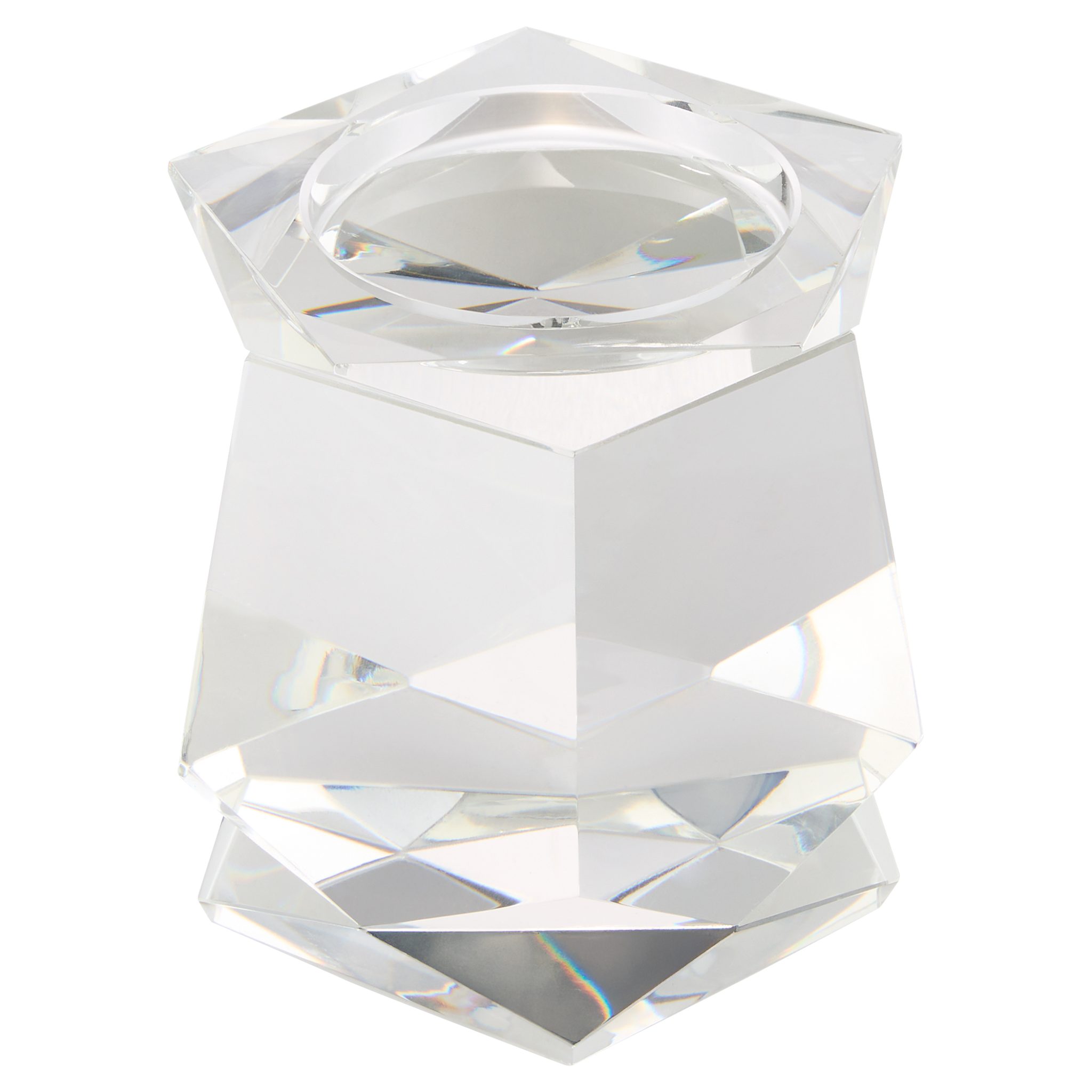 The Faceted Pillar Candleholders feature modern crystal with a bold scale and precise clarity. Its versatile design transitions effortlessly from formal to relaxed settings. Available in various shapes and sizes, it can be paired together for a bold presence or stand alone as an eye-catching accent.