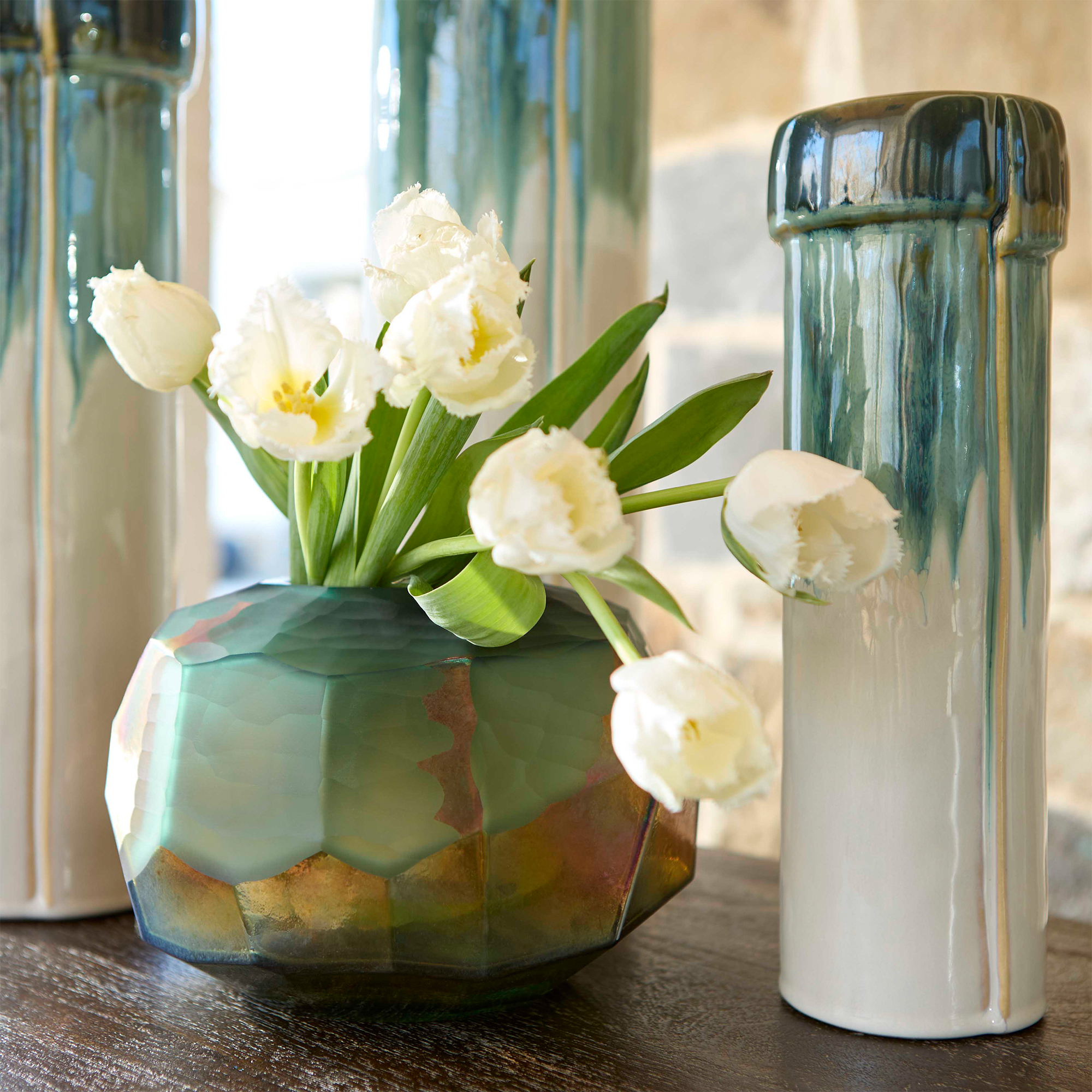 Featuring a reactive glaze with an ombre effect, the Folded collection of ceramics boasts a cascade sage colorscape that fades from the top down, creating a captivating visual journey. This gradual transition of hues adds depth and dimension to each piece, infusing your decor with a sense of organic beauty. A vertical fold detail on the cylindrical shape adds texture and movement, enhancing the tactile appeal of the containers. This subtle yet striking feature highlights the craftsmanship and attention to detail that defines the Folded Collection. The Folded collection offers cache pots or vases, with three size options for each style.
