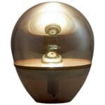 The out of this world shape of this table lamp is reminiscent of a mission to Mars. The Galactic table lamp boasts a generous proportion in its gradient ombre glass shade. A single 60w medium base bulb provides ample illumination from the dimmable light source. Coupled with an aged brass ring accent to complete the look of this luminary, the Galactic lamp is perfect for any modern bedroom, transitional entryway, or mid-century modern living room ensemble.