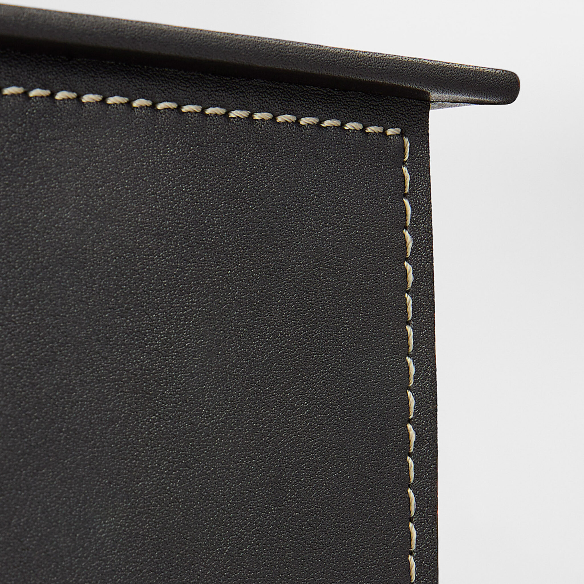 Discover the Garcia Boxes in black waxed leather with brass hardware. This distressed leather piece has top stitched detail, includes a hinged lid with ribbon support, and is fully lined. Also available in black waxed leather with white topstitching.