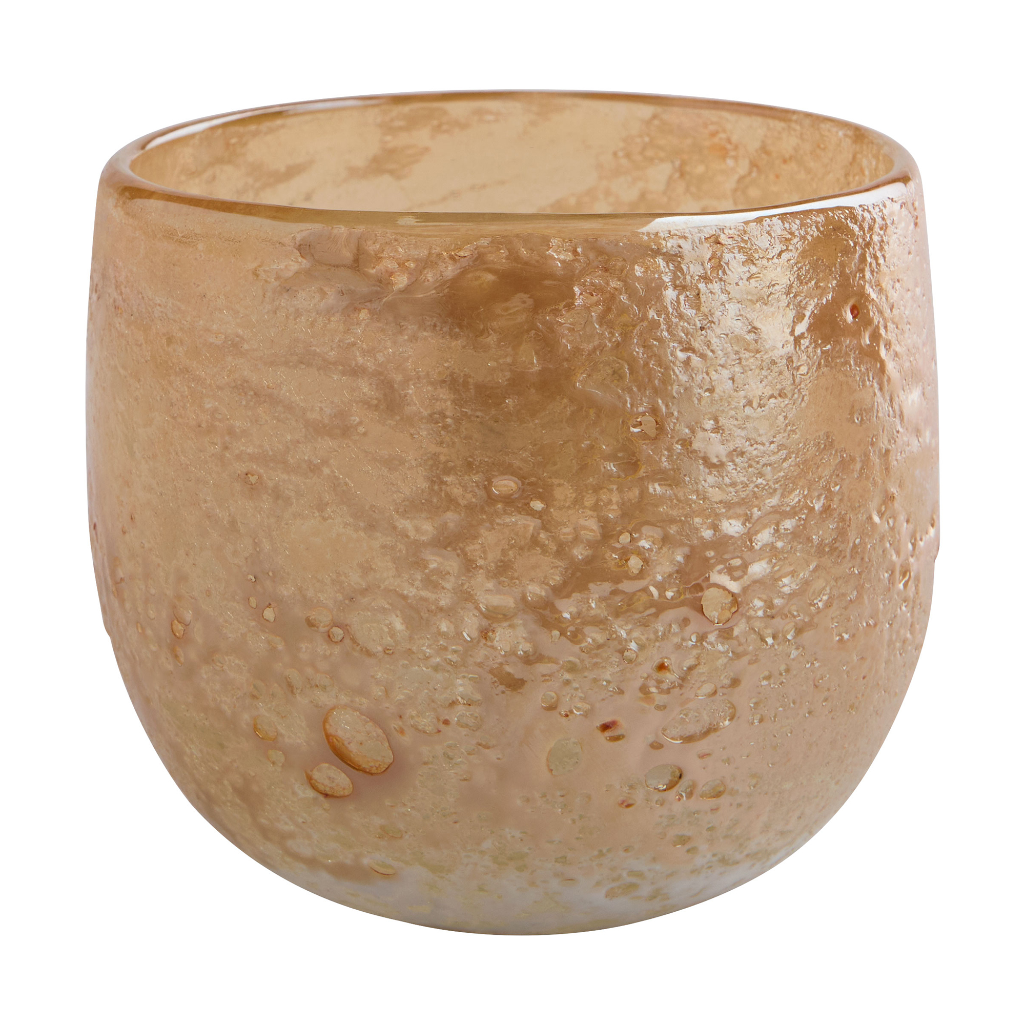- Hand-Blown Glass | Light Gold Reactive Glaze | Rich, Bubbly Texture