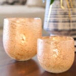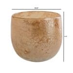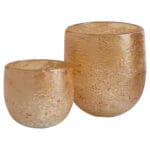 Each piece in the Golden Taffy vase collection is hand-blown, showcasing a luxurious light gold finish that adds depth and distinction with a rich, bubbly texture. The fizzy finish is achieved by applying a reactive glaze on top of the molten glass, making each piece in the collection truly unique. Perfect for adding a touch of warmth and style to any space, these pieces are great as candle holders, casting a soft, ambient glow when lit. Whether displayed as standalone accent pieces or used to hold your favorite candles or flora, these exquisite creations will surely dazzle and delight. Available in two sizes.