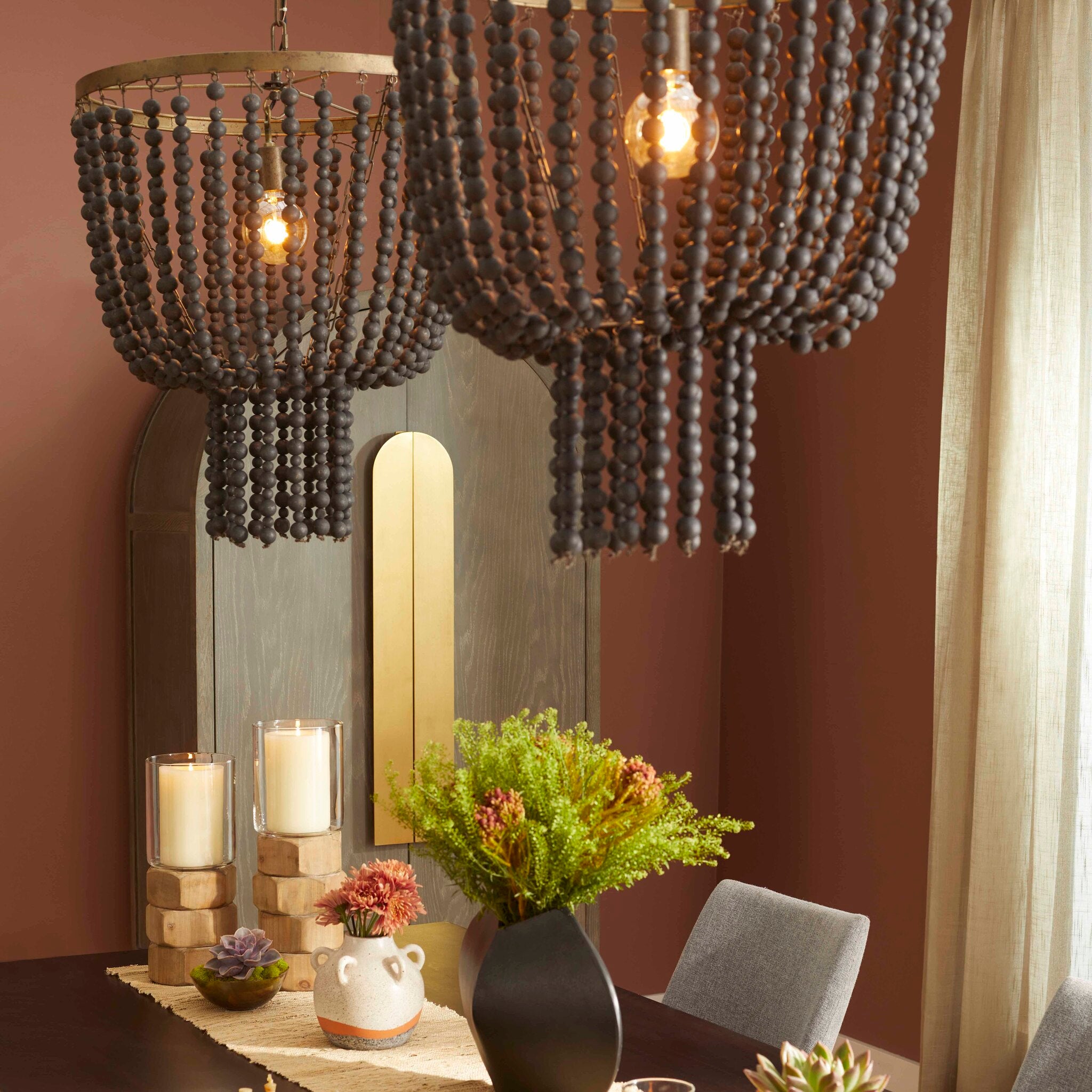 The Hammock Pendant light is petite and elegant. Its circular gilded frame provides support for dark monochrome beads, which elegantly gather at the base of the light, leaving a length to gracefully dangle underneath. This modest pendant light is perfect for smaller interior spaces or display in multiples.