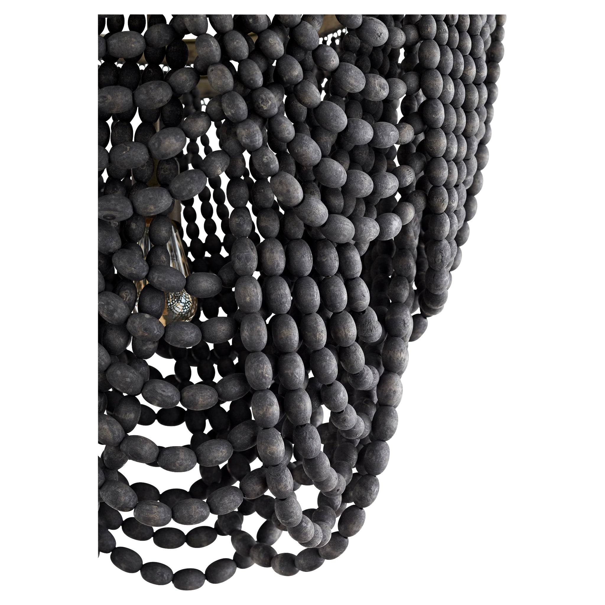 The Hammock Pendant possesses a single gilded frame with dark monochromatic beads that make up its impermanent body. The Hammock Pendant is perfect for any formal space.