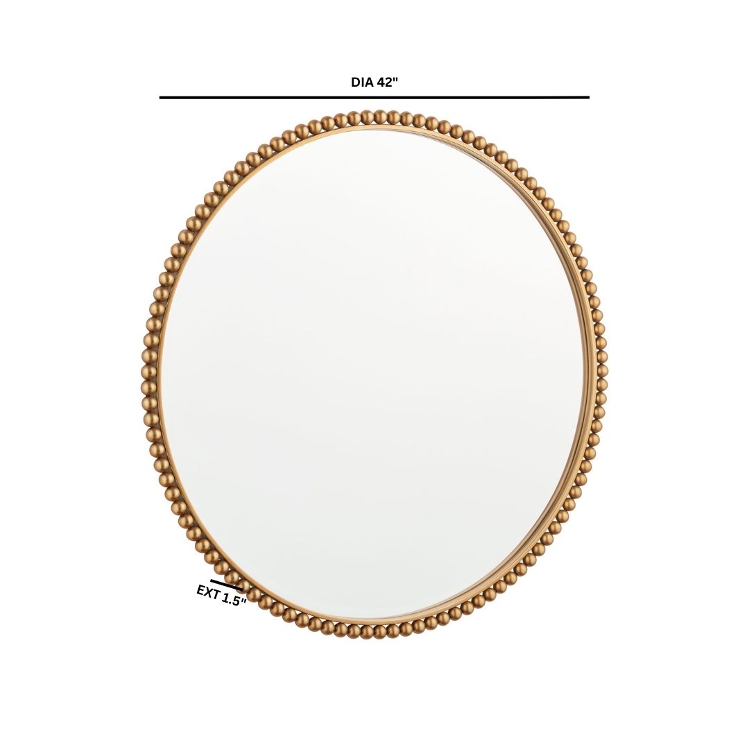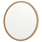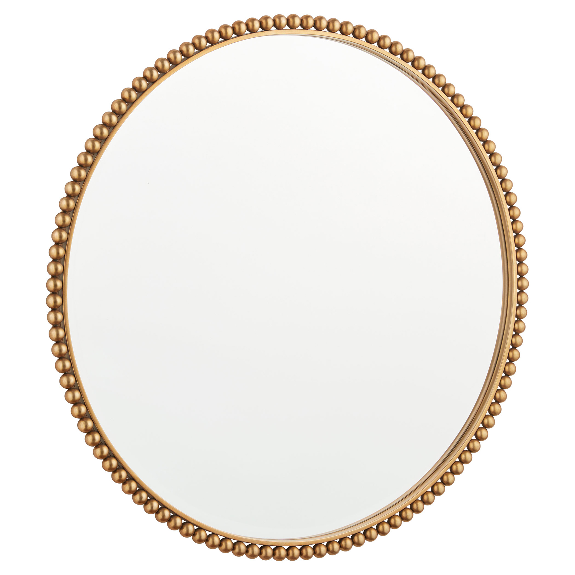 A round mirror is adorned with delicate beaded detail in a gold finish in the Hepburn mirror. The spheres encircling the frame evoke the timeless beauty of a pearl necklace, adding glamour and luster. With its classic aura, the Hepburn mirror becomes a focal point in any bedroom, living room, or entryway.