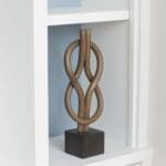 The classic square knot, or Hercules knot, is a recurring symbol of strength and unity. Hand-formed rattan wood poles are interwoven and fixed to a wooden base. A rich Mahagony finish is applied, creating a spectacular display of deep tones and natural materials. Place alone on an accent table or upon a bookcase shelf to add an artistic touch.